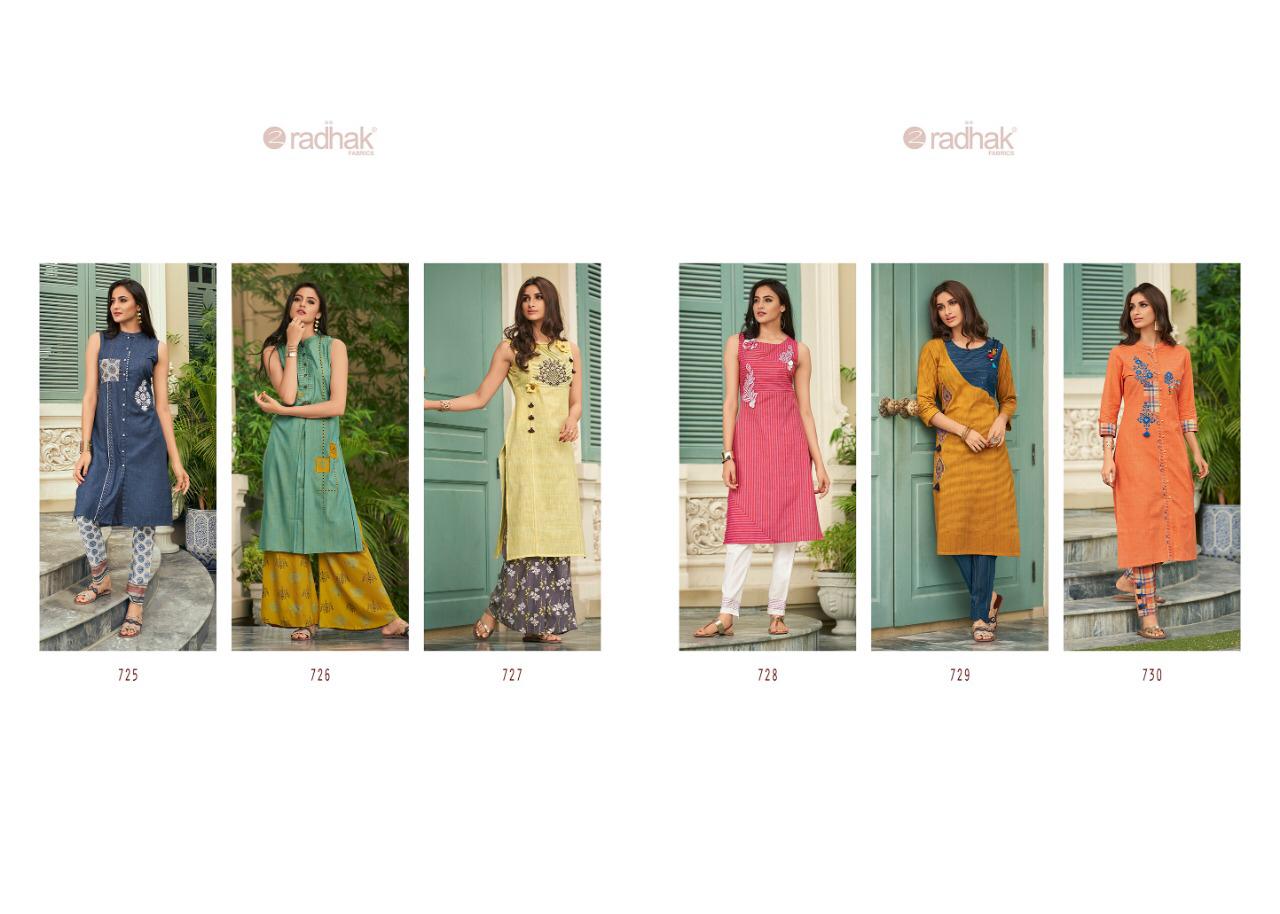 Buy Online Radhak Maanaa 7 Series 726 To 730 Designer Kurtis With Pant Wholesale Supplier Surat 6 Pcs of Full Catalogue at Wholesale Price. Looking for Radhak Maanaa 7 Series 726 To 730 Designer Kurtis With Pant Wholesale Supplier Surat Full Catalouge at Best Price? Buy Now Radhak Maanaa 7 Series 726 To 730 Designer Kurtis With Pant Wholesale Supplier Surat at Wholesale Rate of Rs 5922 with Total 6 Pcs from authroized dealer and supplier of Brand. Cost of Each piece is just only Rs 987 which is very low and affordable price to resale the product in your retail store ,This is Surat based Wholesale Supplier & Dealer of Brand. Click on Brand name to Know more about Brand's products.Call or Whatsapp on 9898838984 for booking or enquiry
