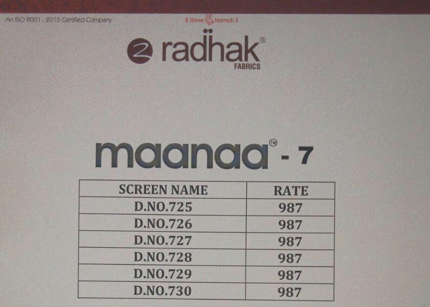 Radhak Maanaa 7 Series 726 To 730 Designer Kurtis With Pant Wholesale Supplier Surat