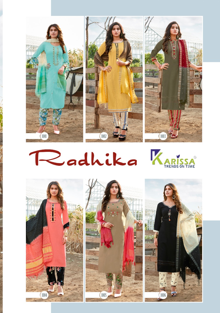 Buy Online Radhika By Karissa Manufacturer Traders Surat 6 Pcs of Full Catalogue at Wholesale Price. Looking for Radhika By Karissa Manufacturer Traders Surat Full Catalouge at Best Price? Buy Now Radhika By Karissa Manufacturer Traders Surat at Wholesale Rate of Rs 5100 with Total 6 Pcs from authroized dealer and supplier of Brand. Cost of Each piece is just only Rs 850 which is very low and affordable price to resale the product in your retail store ,This is Surat based Wholesale Supplier & Dealer of Brand. Click on Brand name to Know more about Brand's products.Call or Whatsapp on 9898838984 for booking or enquiry