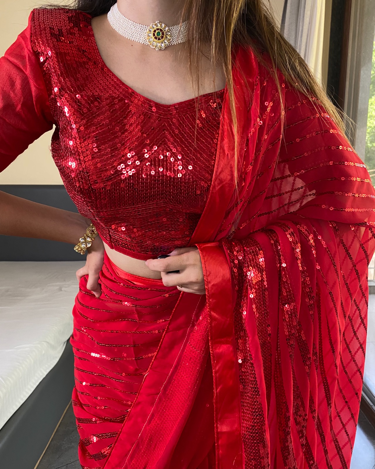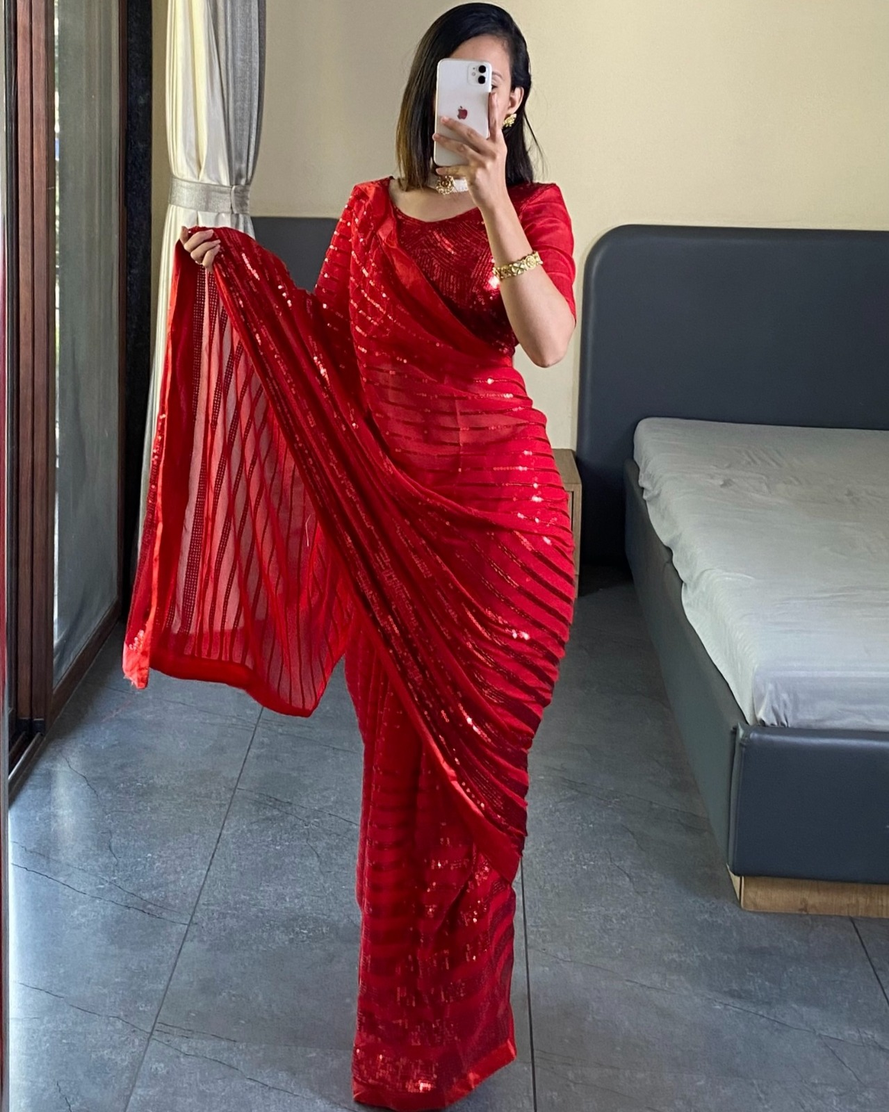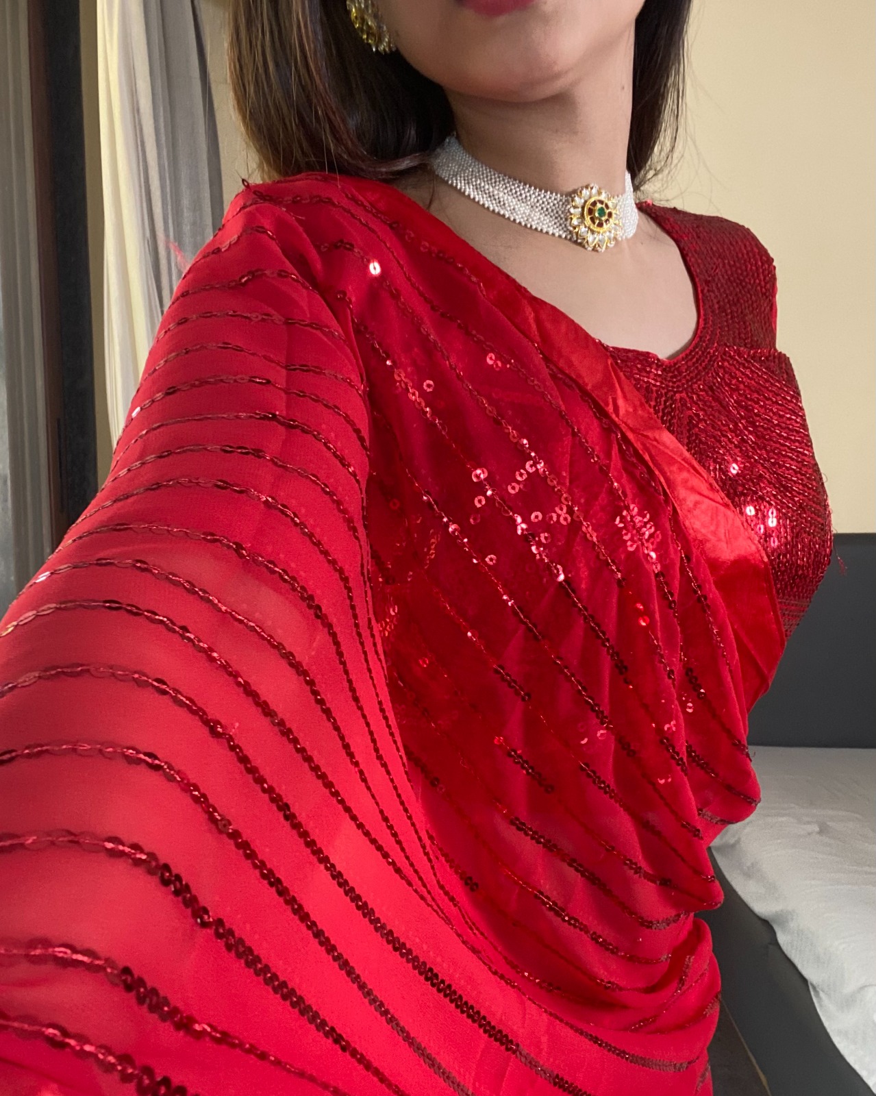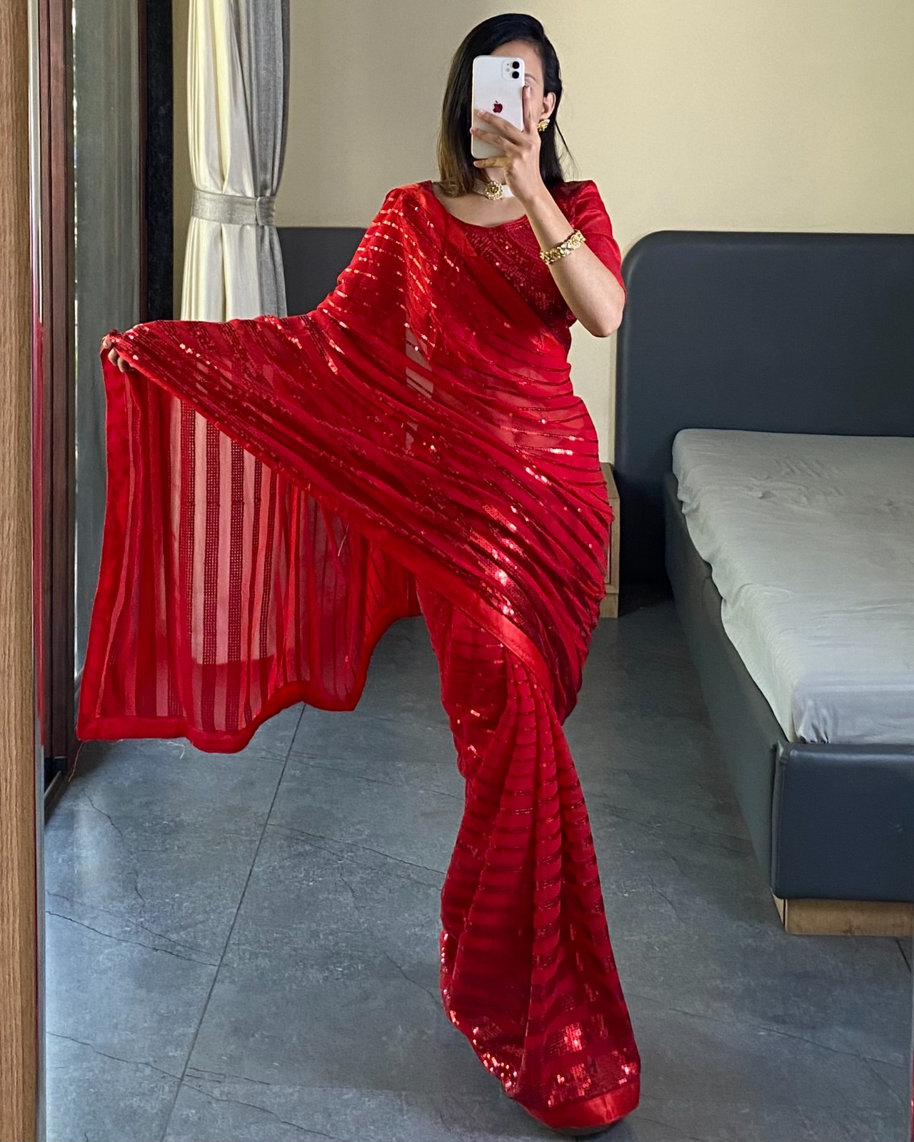 Radhika Georgette Fancy Sequence Beutiful Sarees Collection Surat