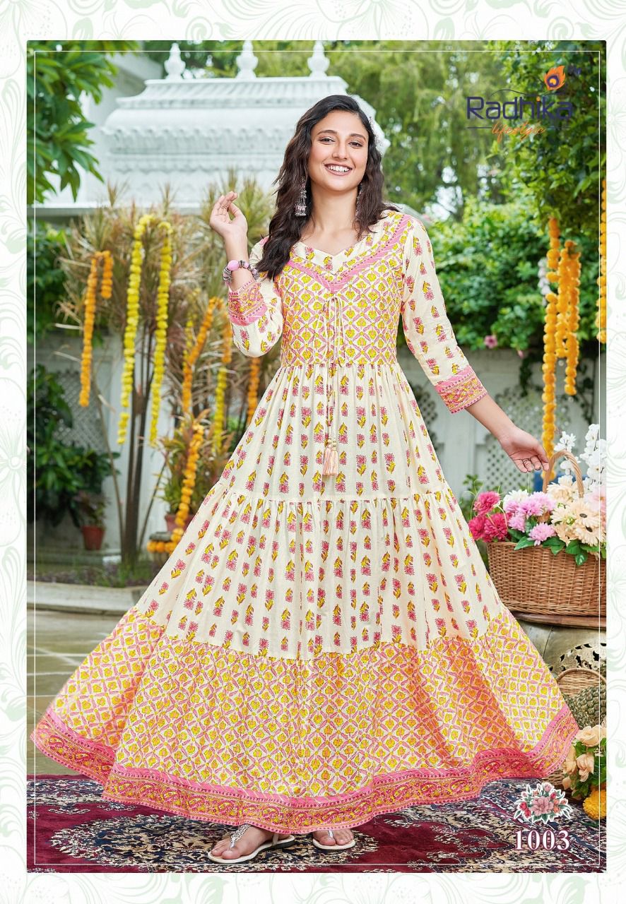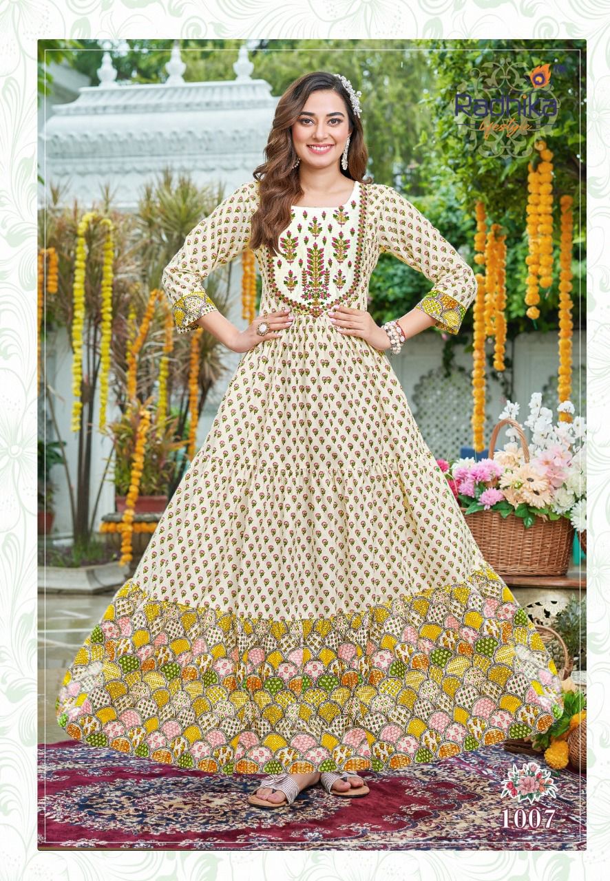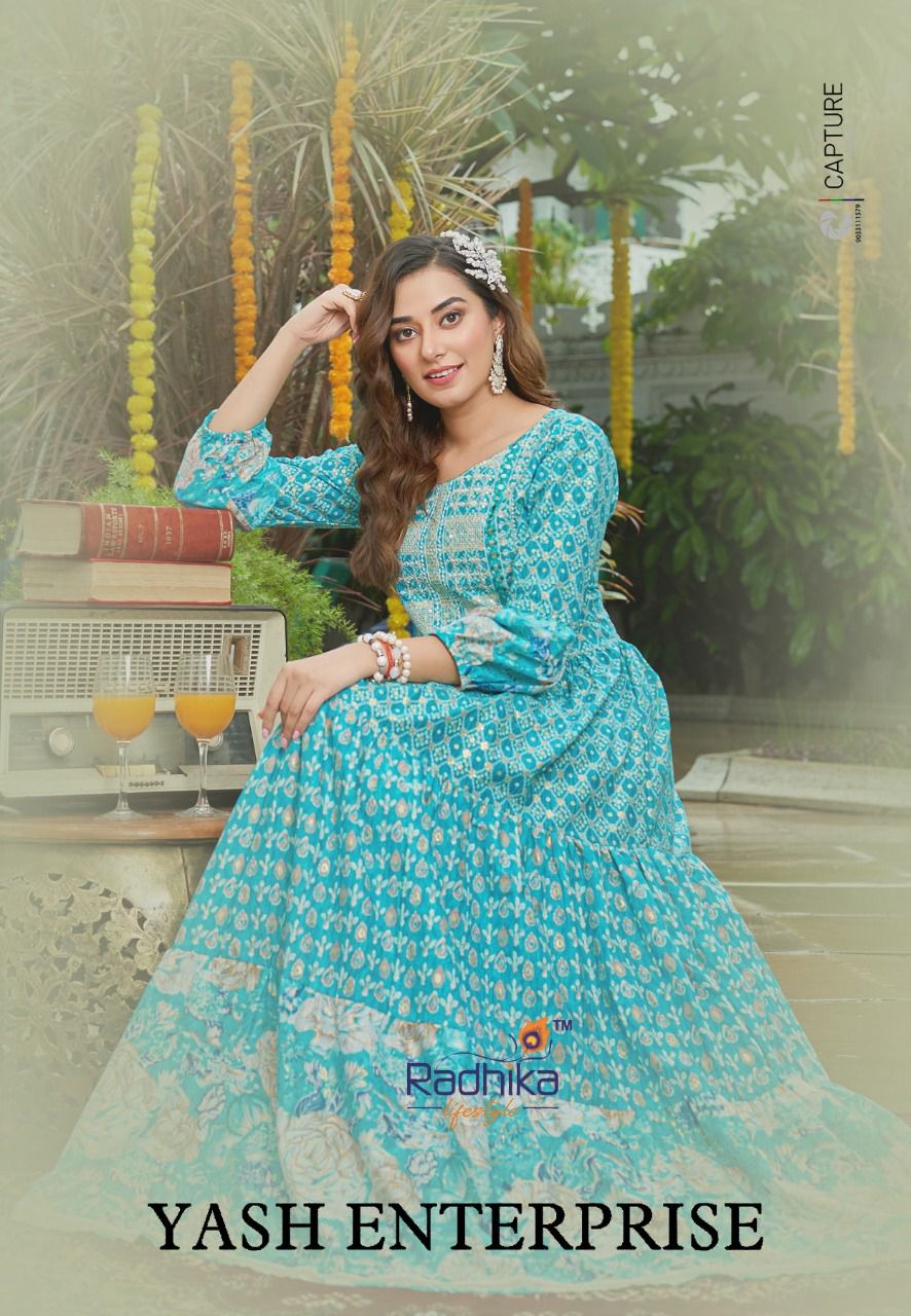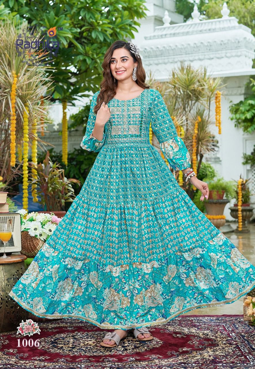 Buy Online Radhika Lifestyle Glamour Designer Gown Manufacturer Traders And Dealer From India 7 Pcs of Full Catalogue at Wholesale Price. Looking for Radhika Lifestyle Glamour Designer Gown Manufacturer Traders And Dealer From India Full Catalouge at Best Price? Buy Now Radhika Lifestyle Glamour Designer Gown Manufacturer Traders And Dealer From India at Wholesale Rate of Rs 4620 with Total 7 Pcs from authroized dealer and supplier of Brand. Cost of Each piece is just only Rs 660 which is very low and affordable price to resale the product in your retail store ,This is Surat based Wholesale Supplier & Dealer of Brand. Click on Brand name to Know more about Brand's products.Call or Whatsapp on 9898838984 for booking or enquiry