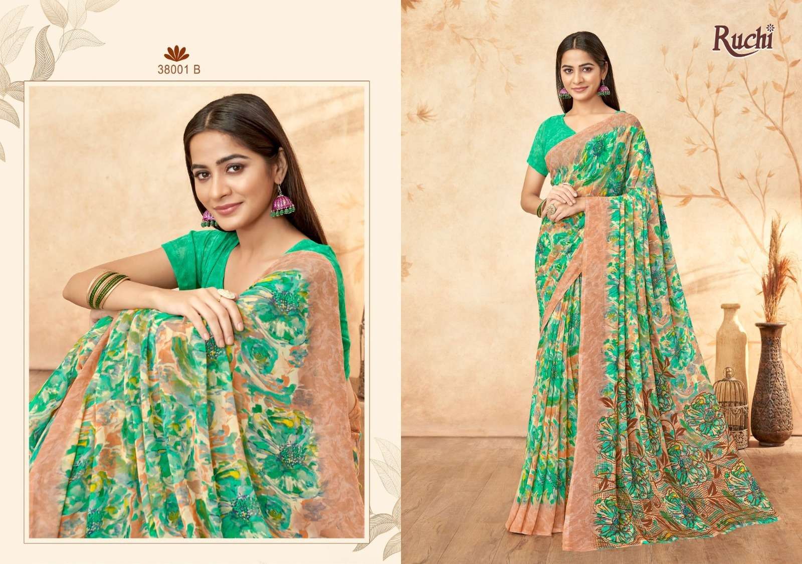 Buy Online RAGAA 1 GEORGETTE VOL 15 SERIES 38001A TO 38003D By RUCHI saree Collection manufacturer surat 12 Pcs of Full Catalogue at Wholesale Price. Looking for RAGAA 1 GEORGETTE VOL 15 SERIES 38001A TO 38003D By RUCHI saree Collection manufacturer surat Full Catalouge at Best Price? Buy Now RAGAA 1 GEORGETTE VOL 15 SERIES 38001A TO 38003D By RUCHI saree Collection manufacturer surat at Wholesale Rate of Rs 5676 with Total 12 Pcs from authroized dealer and supplier of RUCHI SAREE Brand. Cost of Each piece is just only Rs 473 which is very low and affordable price to resale the product in your retail store ,This is Surat based Wholesale Supplier & Dealer of RUCHI SAREE Brand. Click on Brand name to Know more about RUCHI SAREE Brand's products.Call or Whatsapp on 9898838984 for booking or enquiry