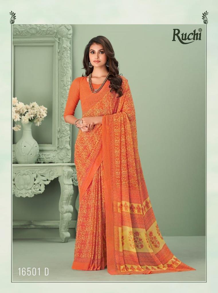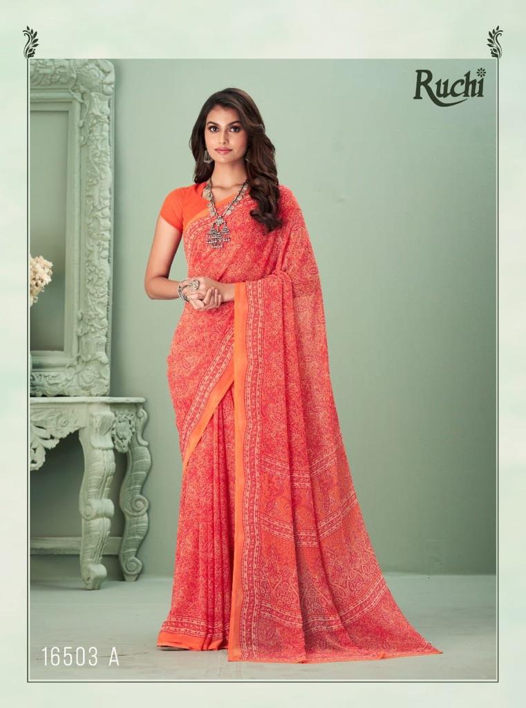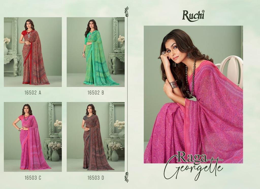 Buy Online Ragaa Georgette By Ruchi Saree 12 Pcs of Full Catalogue at Wholesale Price. Looking for Ragaa Georgette By Ruchi Saree Full Catalouge at Best Price? Buy Now Ragaa Georgette By Ruchi Saree at Wholesale Rate of Rs 5700 with Total 12 Pcs from authroized dealer and supplier of RUCHI SAREE Brand. Cost of Each piece is just only Rs 475 which is very low and affordable price to resale the product in your retail store ,This is Surat based Wholesale Supplier & Dealer of RUCHI SAREE Brand. Click on Brand name to Know more about RUCHI SAREE Brand's products.Call or Whatsapp on 9898838984 for booking or enquiry