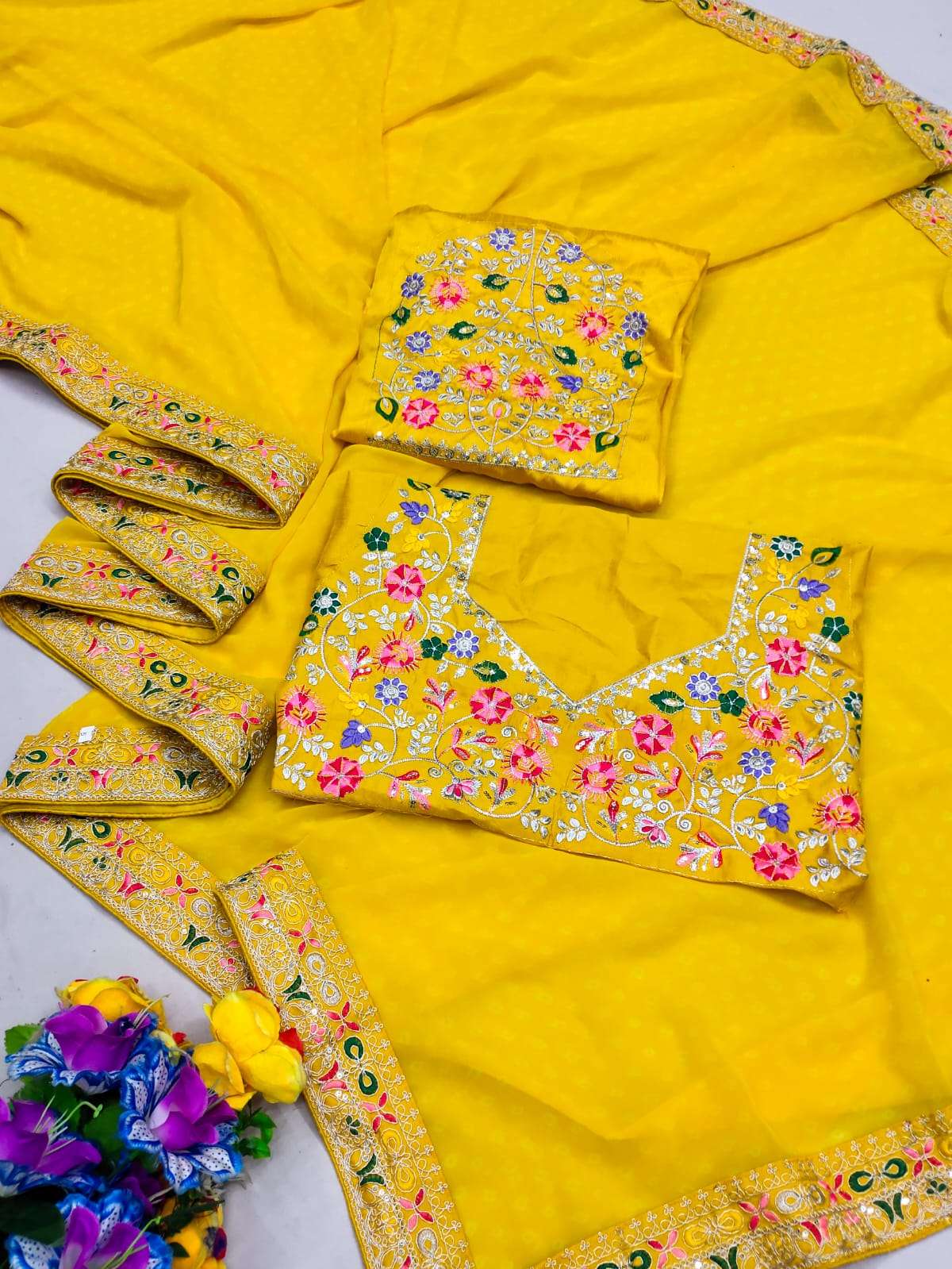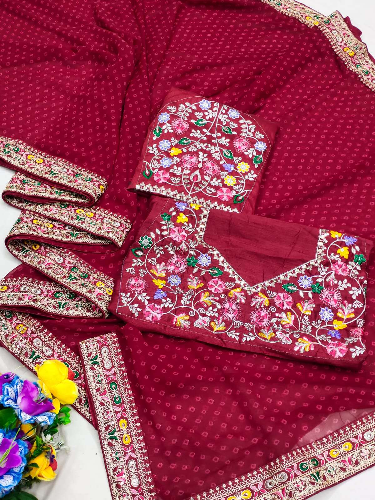 ➡️Catalog - *Raghumala* ➡️Rate - *999+5%* ➡️Fabric - *Heavy Georgette with Fancy Lace & Heavy Embroidery Blouse*