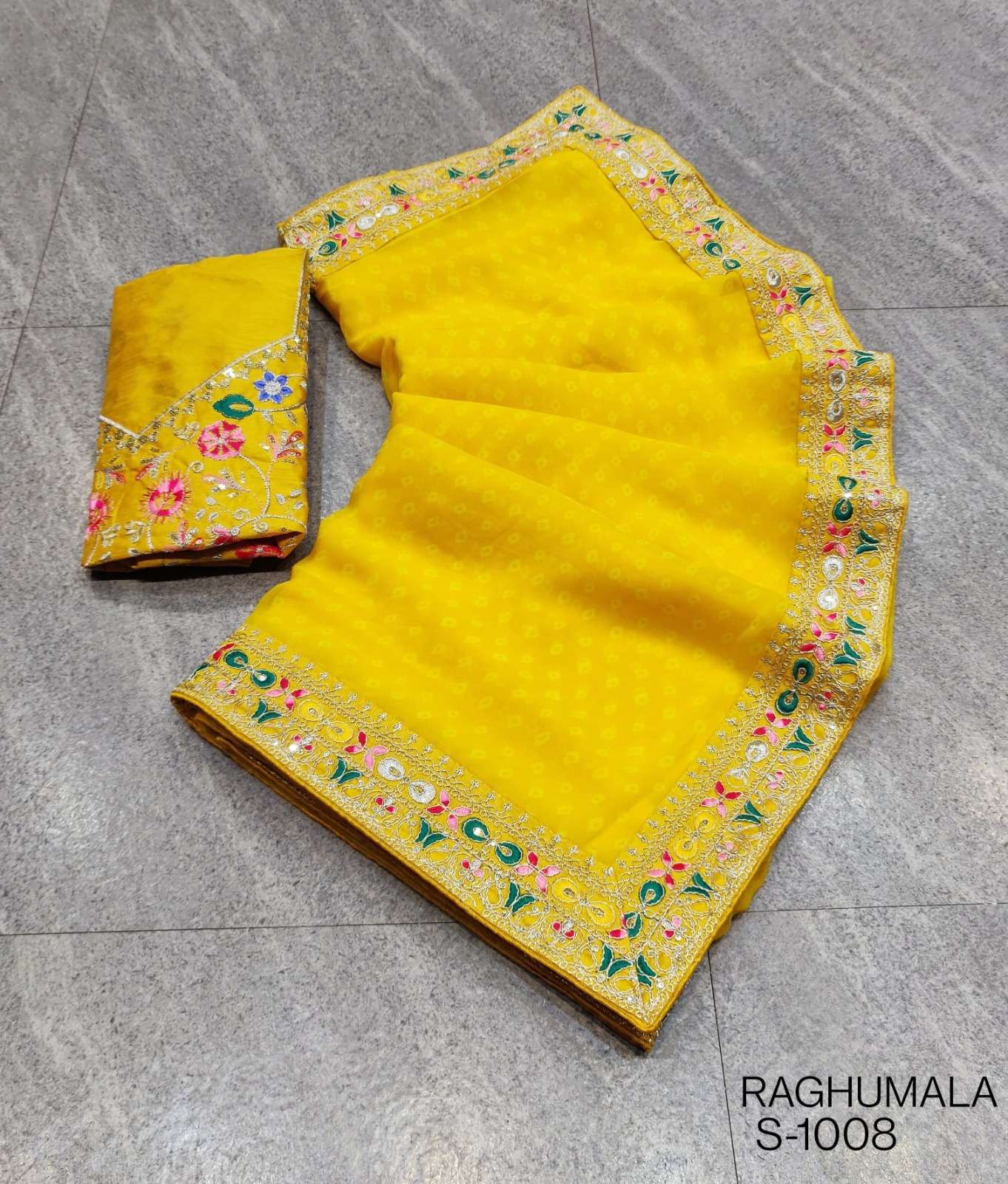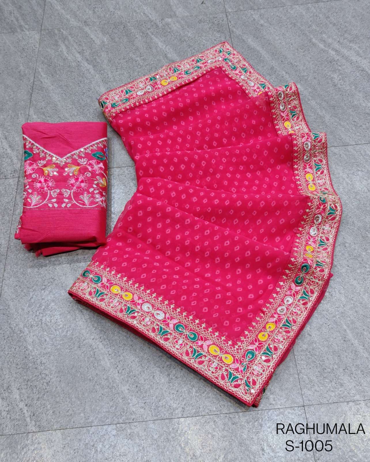 ➡️Catalog - *Raghumala* ➡️Rate - *999+5%* ➡️Fabric - *Heavy Georgette with Fancy Lace & Heavy Embroidery Blouse*