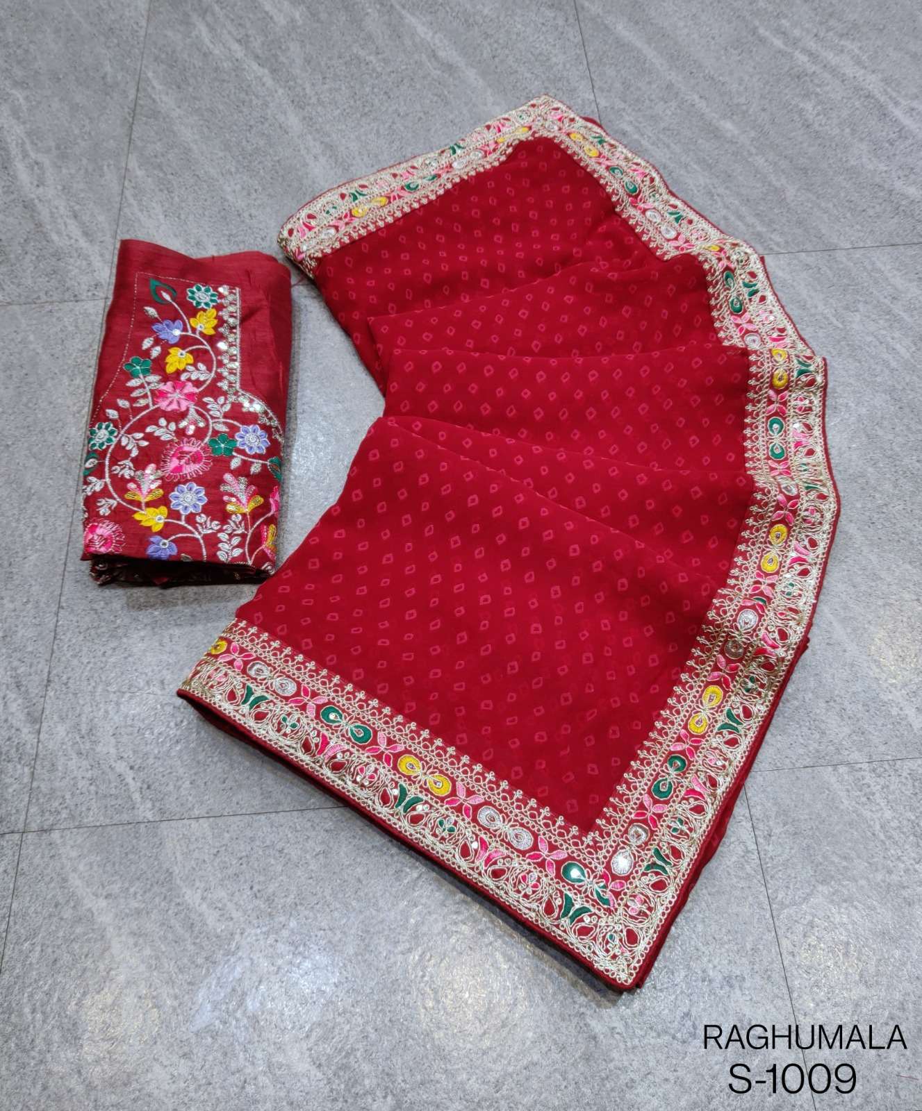 Buy Online Raghumala by Stavan Heavy Georgette saree collection manufacturer surat 10 Pcs of Full Catalogue at Wholesale Price. Looking for Raghumala by Stavan Heavy Georgette saree collection manufacturer surat Full Catalouge at Best Price? Buy Now Raghumala by Stavan Heavy Georgette saree collection manufacturer surat at Wholesale Rate of Rs 9990 with Total 10 Pcs from authroized dealer and supplier of BRAND'S Brand. Cost of Each piece is just only Rs 999 which is very low and affordable price to resale the product in your retail store ,This is Surat based Wholesale Supplier & Dealer of BRAND'S Brand. Click on Brand name to Know more about BRAND'S Brand's products.Call or Whatsapp on 9898838984 for booking or enquiry