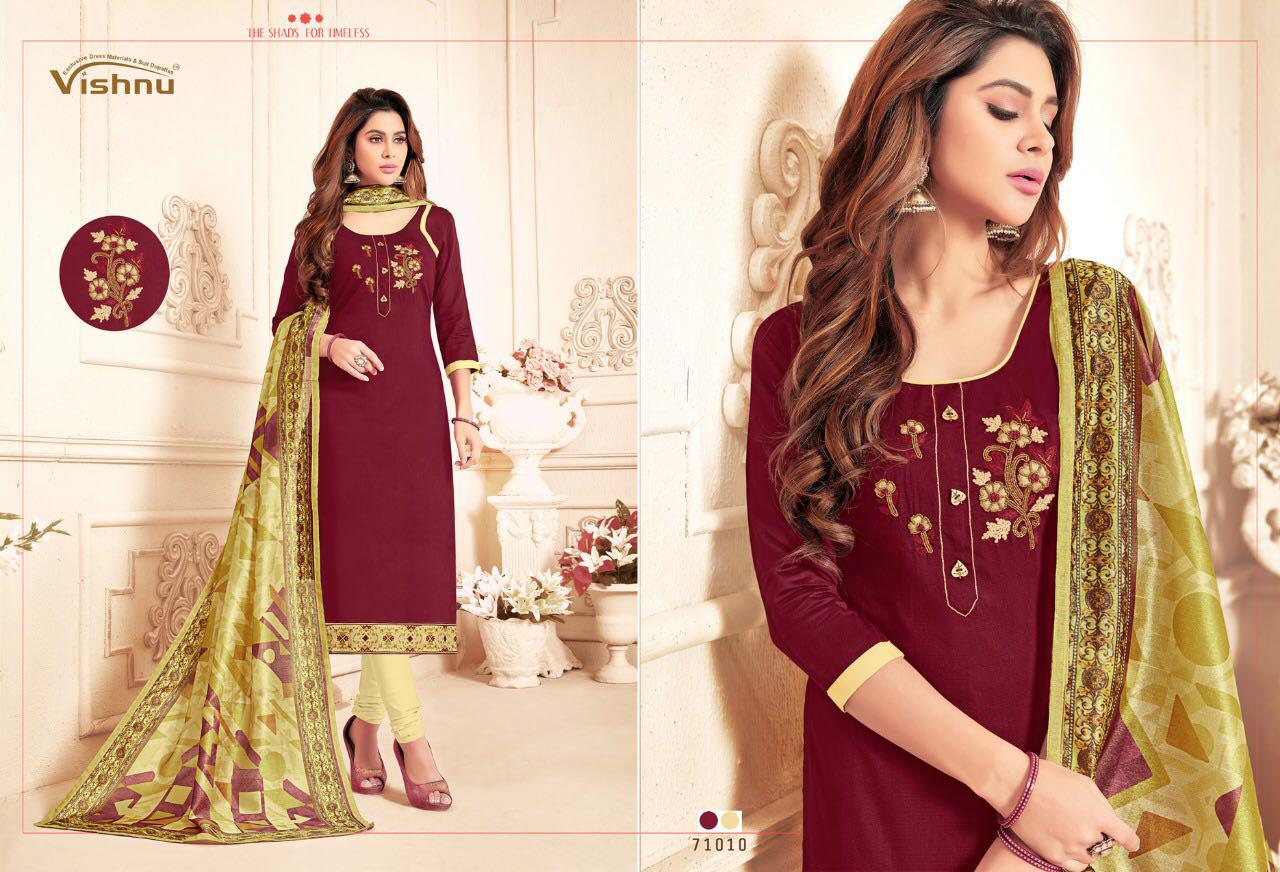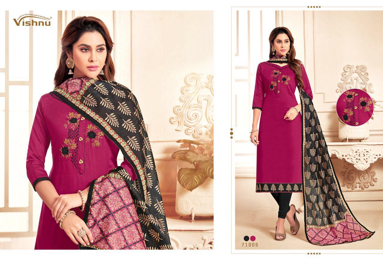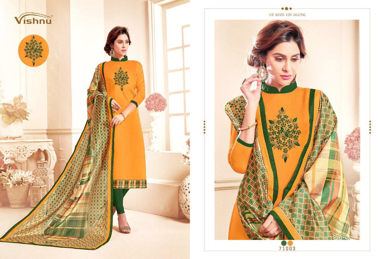 Buy Online Ragini By Vishnu Impex 71001 Series Fancy Softy Salwar Kameez Catlog Wholesaler Surat 12 Pcs of Full Catalogue at Wholesale Price. Looking for Ragini By Vishnu Impex 71001 Series Fancy Softy Salwar Kameez Catlog Wholesaler Surat Full Catalouge at Best Price? Buy Now Ragini By Vishnu Impex 71001 Series Fancy Softy Salwar Kameez Catlog Wholesaler Surat at Wholesale Rate of Rs 8700 with Total 12 Pcs from authroized dealer and supplier of VISHNU IMPEX Brand. Cost of Each piece is just only Rs 725 which is very low and affordable price to resale the product in your retail store ,This is Surat based Wholesale Supplier & Dealer of VISHNU IMPEX Brand. Click on Brand name to Know more about VISHNU IMPEX Brand's products.Call or Whatsapp on 9898838984 for booking or enquiry