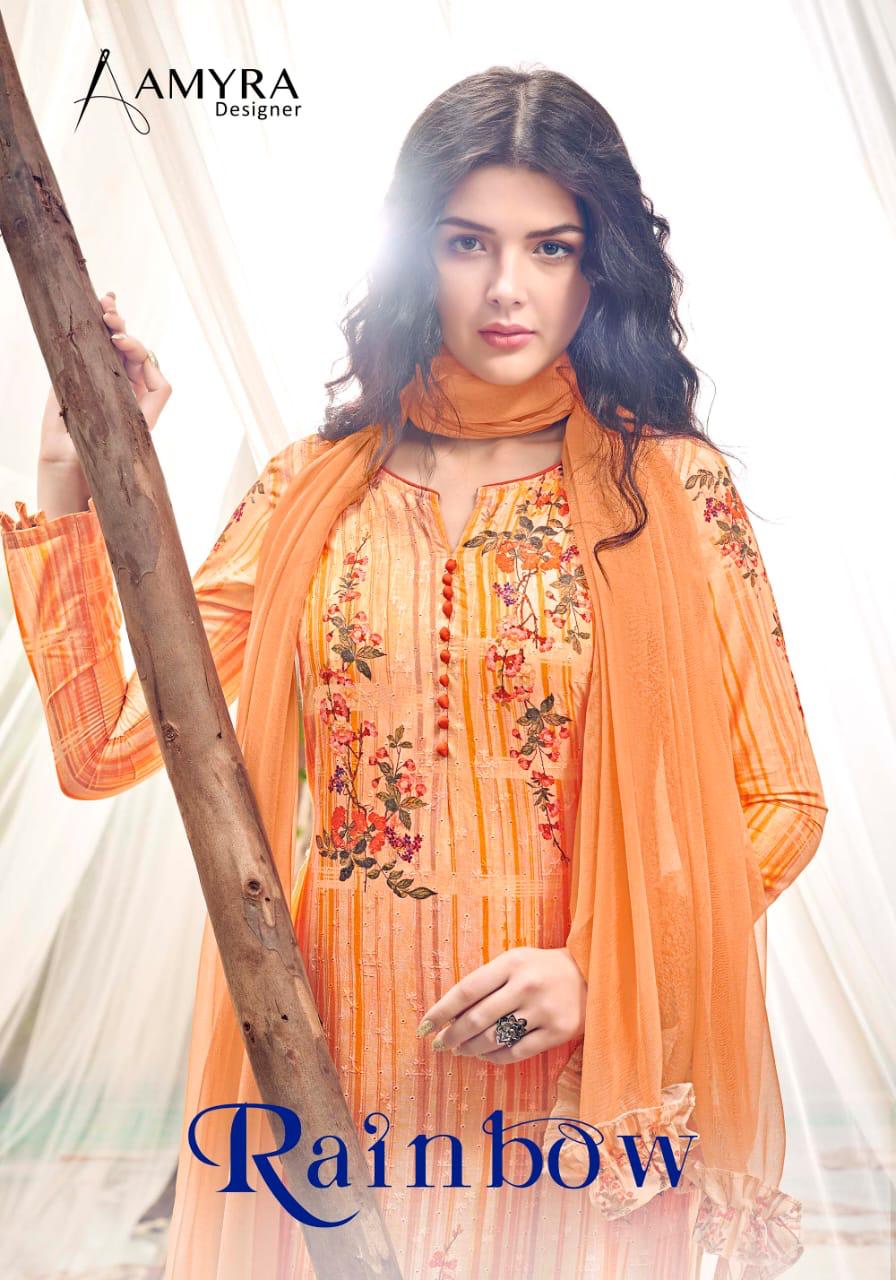 Buy Online Rainbow By Amyra Designer Suits Wholesale Supplier India 8 Pcs of Full Catalogue at Wholesale Price. Looking for Rainbow By Amyra Designer Suits Wholesale Supplier India Full Catalouge at Best Price? Buy Now Rainbow By Amyra Designer Suits Wholesale Supplier India at Wholesale Rate of Rs 7800 with Total 8 Pcs from authroized dealer and supplier of Brand. Cost of Each piece is just only Rs 975 which is very low and affordable price to resale the product in your retail store ,This is Surat based Wholesale Supplier & Dealer of Brand. Click on Brand name to Know more about Brand's products.Call or Whatsapp on 9898838984 for booking or enquiry