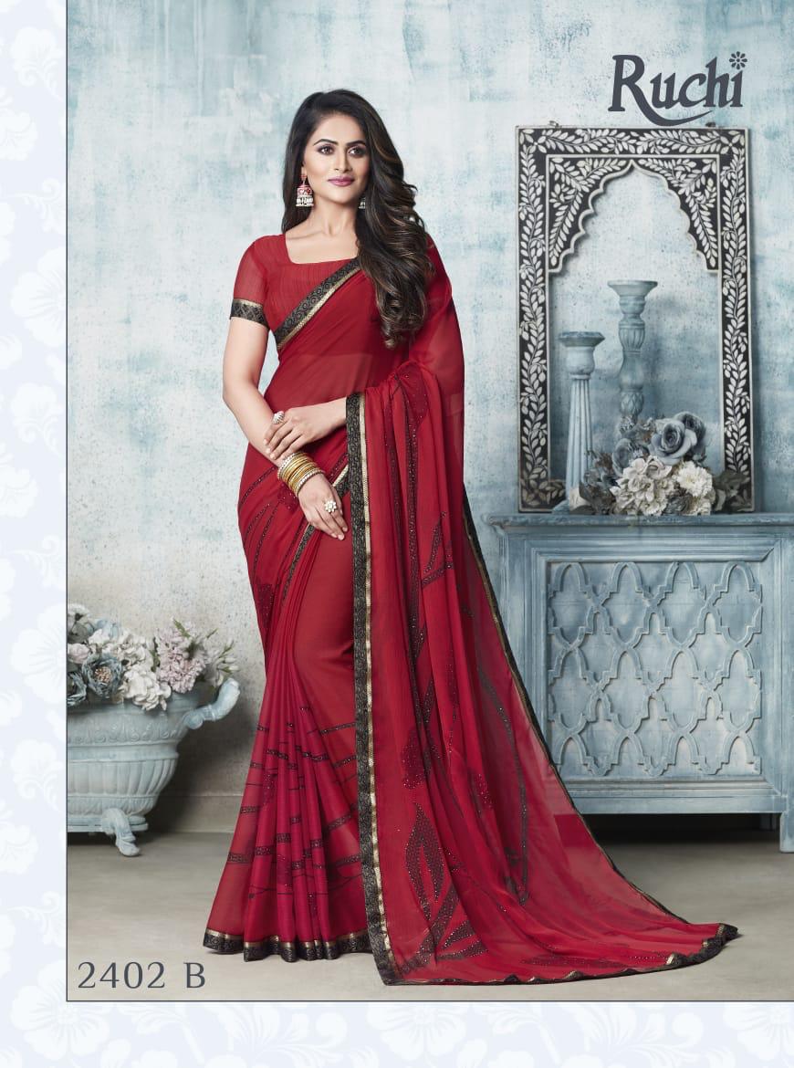 RUCHI SAREES CATALOG- RAINBOW FABRIC- CHIFFON WITH DIAMOND WORK. PCS. - 12. WEIGHT- 450 GRAMS (APPROX.) Set & loose & singel . Rate - 575 per pcs . GST 5 Percent Extra. Delivery from today Single extra 100 |