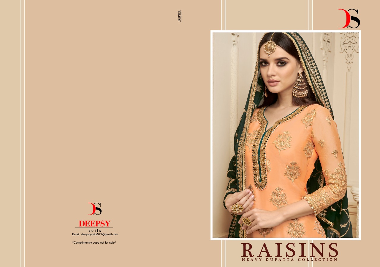 Buy Online Raisins By Deepsy Georgette Embroidered Designer Party Wear Suits Wholesale Supplier And Dealer India 4 Pcs of Full Catalogue at Wholesale Price. Looking for Raisins By Deepsy Georgette Embroidered Designer Party Wear Suits Wholesale Supplier And Dealer India Full Catalouge at Best Price? Buy Now Raisins By Deepsy Georgette Embroidered Designer Party Wear Suits Wholesale Supplier And Dealer India at Wholesale Rate of Rs 6396 with Total 4 Pcs from authroized dealer and supplier of DEEPSY Brand. Cost of Each piece is just only Rs 1599 which is very low and affordable price to resale the product in your retail store ,This is Surat based Wholesale Supplier & Dealer of DEEPSY Brand. Click on Brand name to Know more about DEEPSY Brand's products.Call or Whatsapp on 9898838984 for booking or enquiry
