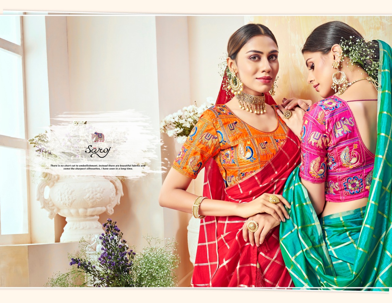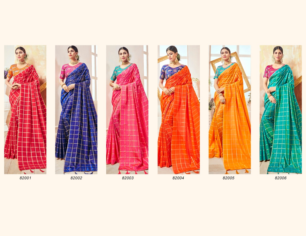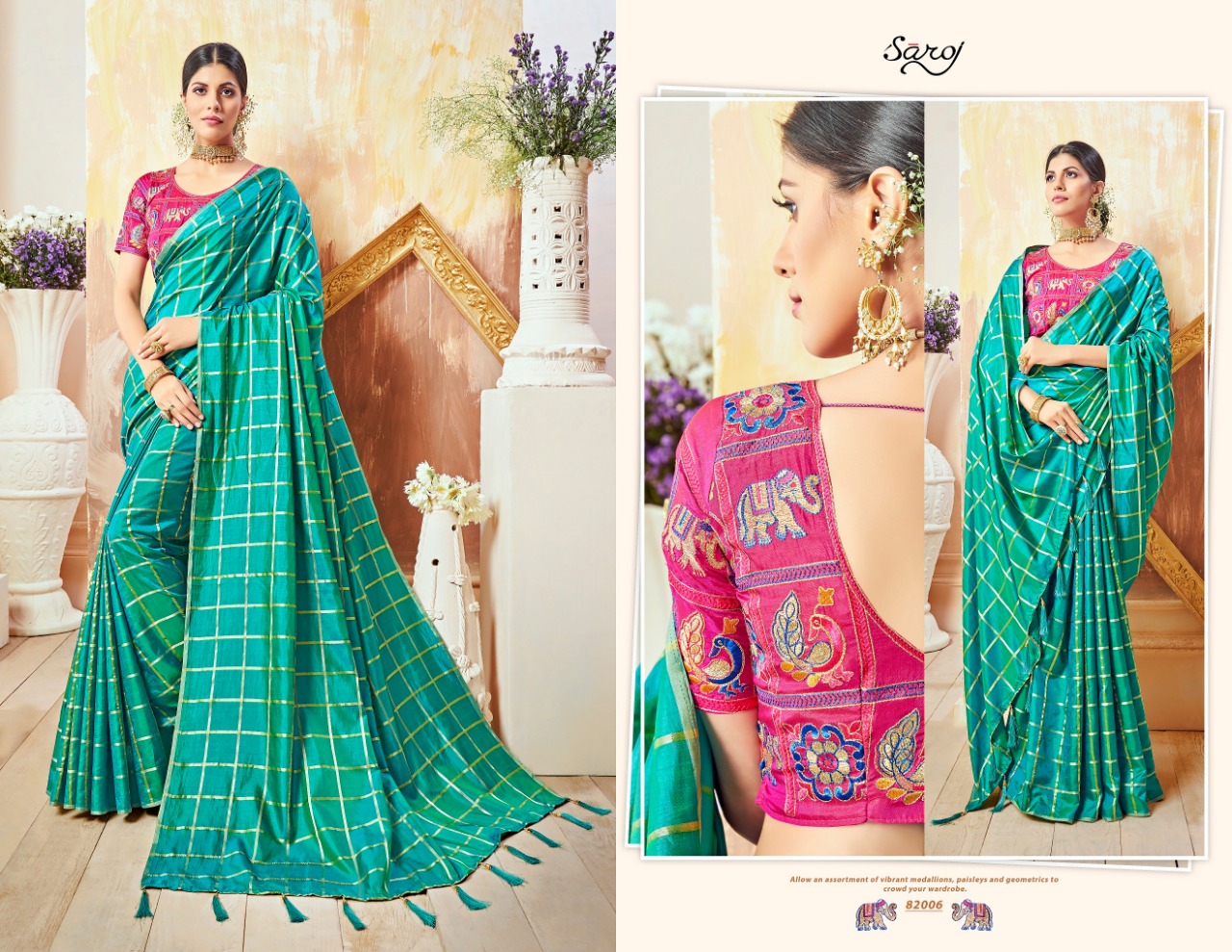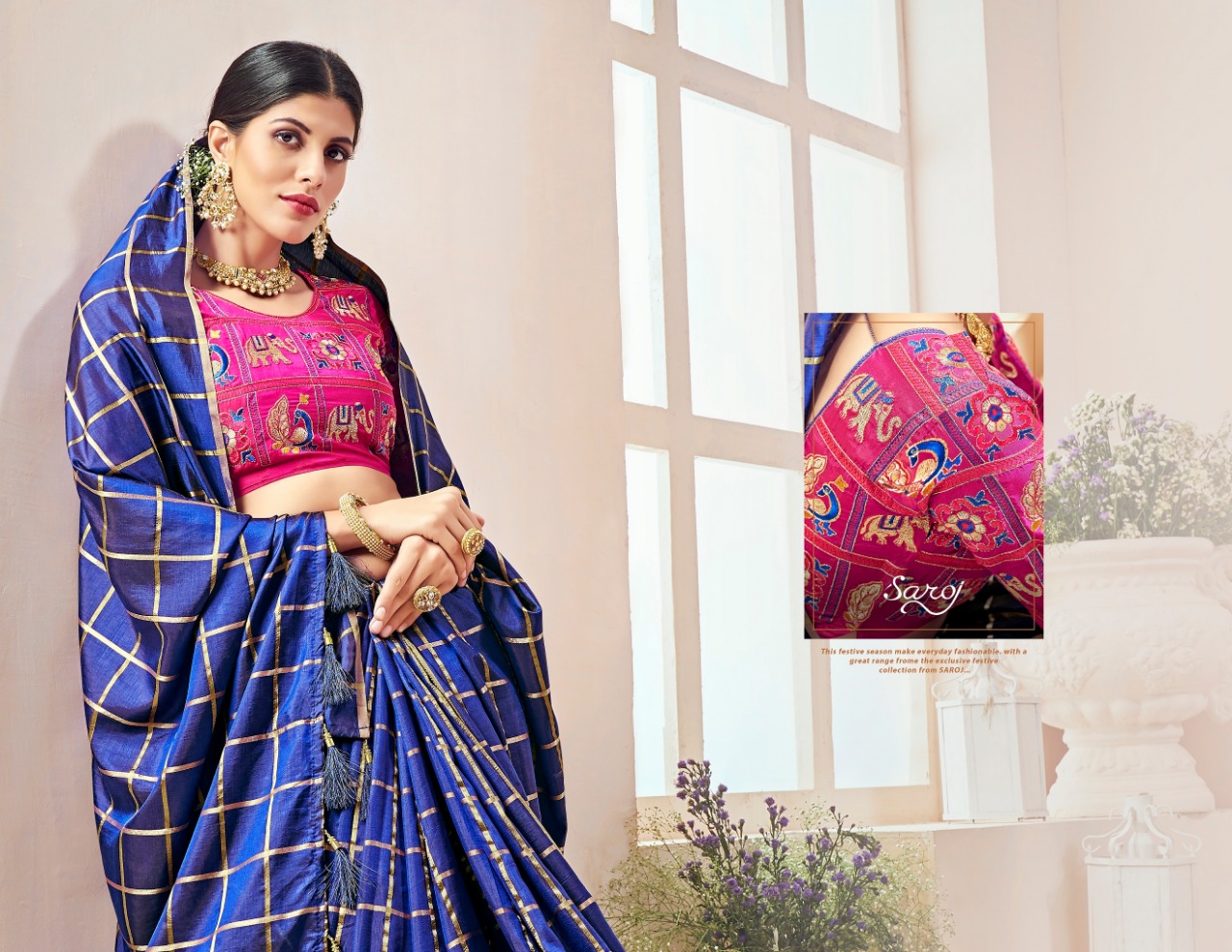 Buy Online Raj Kumari By Saroj 82001 Series Fancy Sana Silk Viscose Checks Saree Collection Wholesaler Surat 6 Pcs of Full Catalogue at Wholesale Price. Looking for Raj Kumari By Saroj 82001 Series Fancy Sana Silk Viscose Checks Saree Collection Wholesaler Surat Full Catalouge at Best Price? Buy Now Raj Kumari By Saroj 82001 Series Fancy Sana Silk Viscose Checks Saree Collection Wholesaler Surat at Wholesale Rate of Rs 6570 with Total 6 Pcs from authroized dealer and supplier of SAROJ SAREE Brand. Cost of Each piece is just only Rs 1095 which is very low and affordable price to resale the product in your retail store ,This is Surat based Wholesale Supplier & Dealer of SAROJ SAREE Brand. Click on Brand name to Know more about SAROJ SAREE Brand's products.Call or Whatsapp on 9898838984 for booking or enquiry