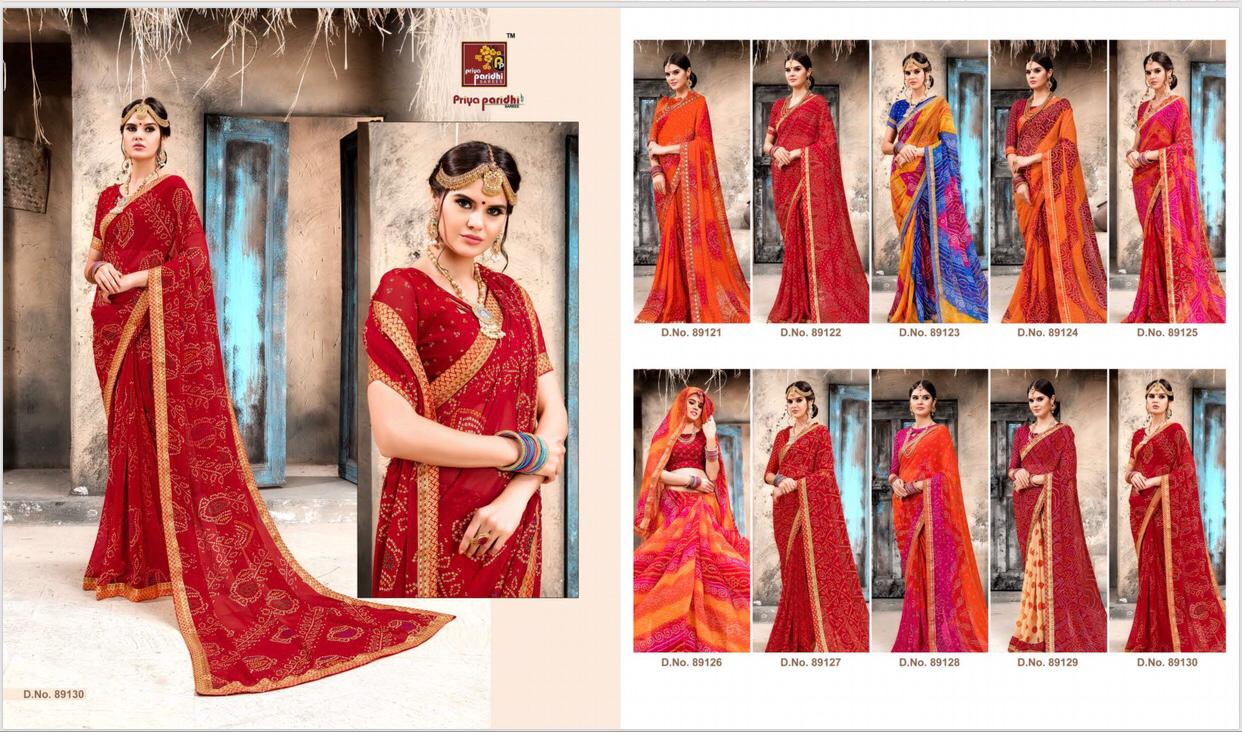 Buy Online Raj Mohini Vol 1 By Priyaparidhi Georgette Designer Sarees Wholesale Supplier And Dealer Surat 10 Pcs of Full Catalogue at Wholesale Price. Looking for Raj Mohini Vol 1 By Priyaparidhi Georgette Designer Sarees Wholesale Supplier And Dealer Surat Full Catalouge at Best Price? Buy Now Raj Mohini Vol 1 By Priyaparidhi Georgette Designer Sarees Wholesale Supplier And Dealer Surat at Wholesale Rate of Rs 5510 with Total 10 Pcs from authroized dealer and supplier of PRIYA PARIDHI Brand. Cost of Each piece is just only Rs 551 which is very low and affordable price to resale the product in your retail store ,This is Surat based Wholesale Supplier & Dealer of PRIYA PARIDHI Brand. Click on Brand name to Know more about PRIYA PARIDHI Brand's products.Call or Whatsapp on 9898838984 for booking or enquiry