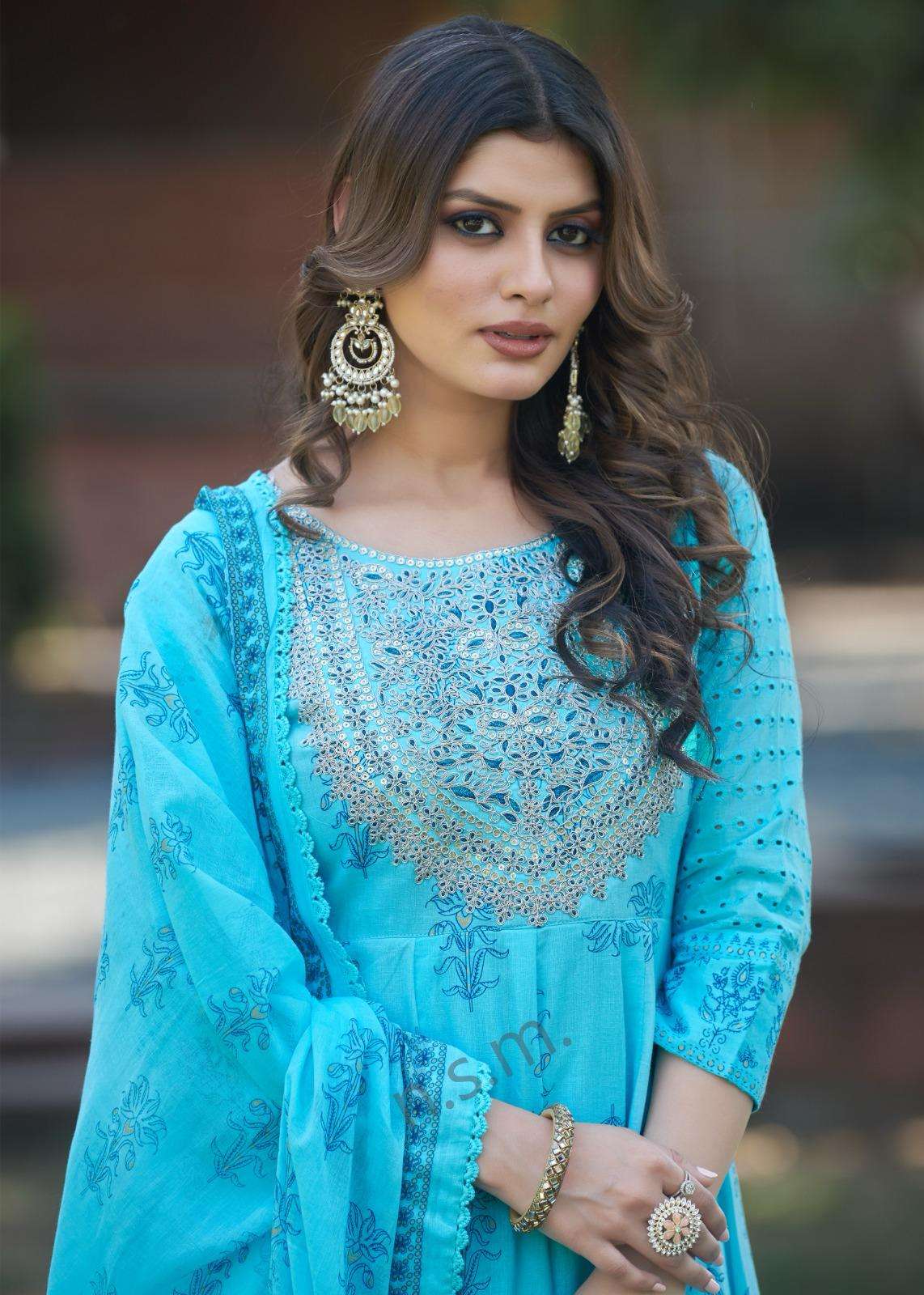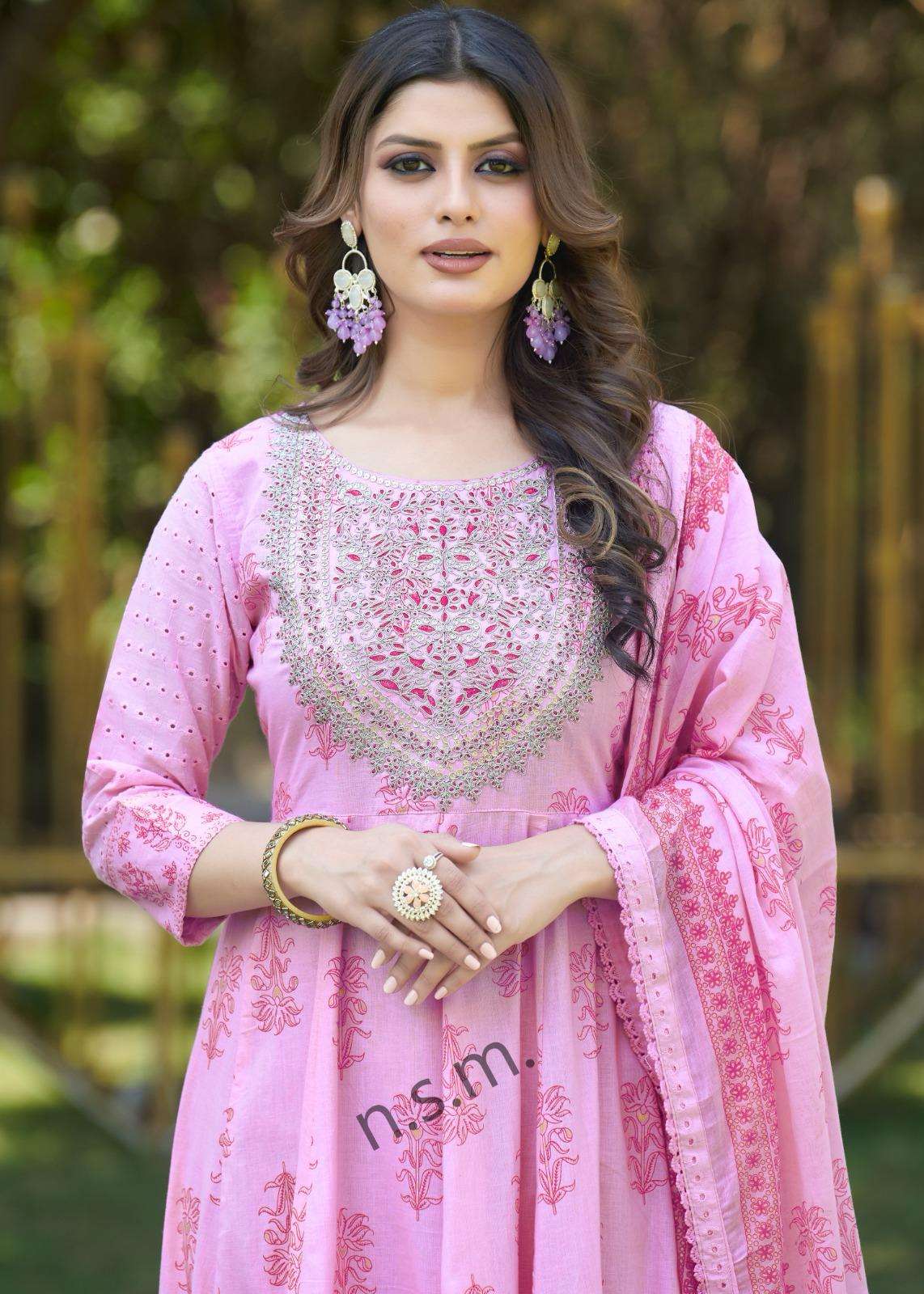 *TOP- HEAVY EMBROIDERY NACK WORK WITH PURE COTTON PRINT ANARKALI STYLE WITH SHIFFLI PANEL WORK*