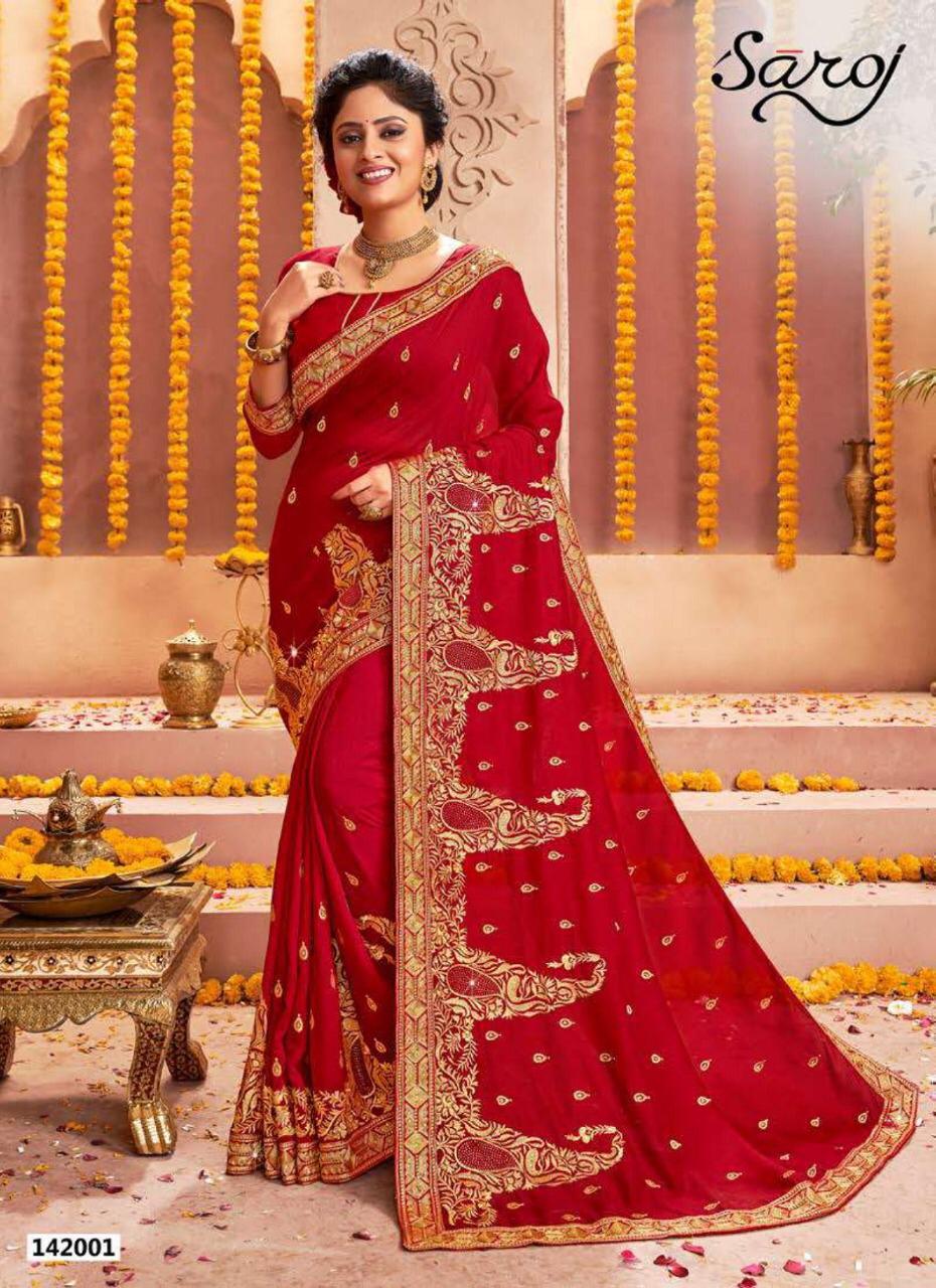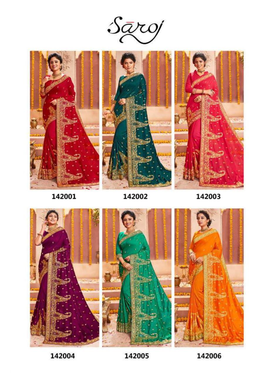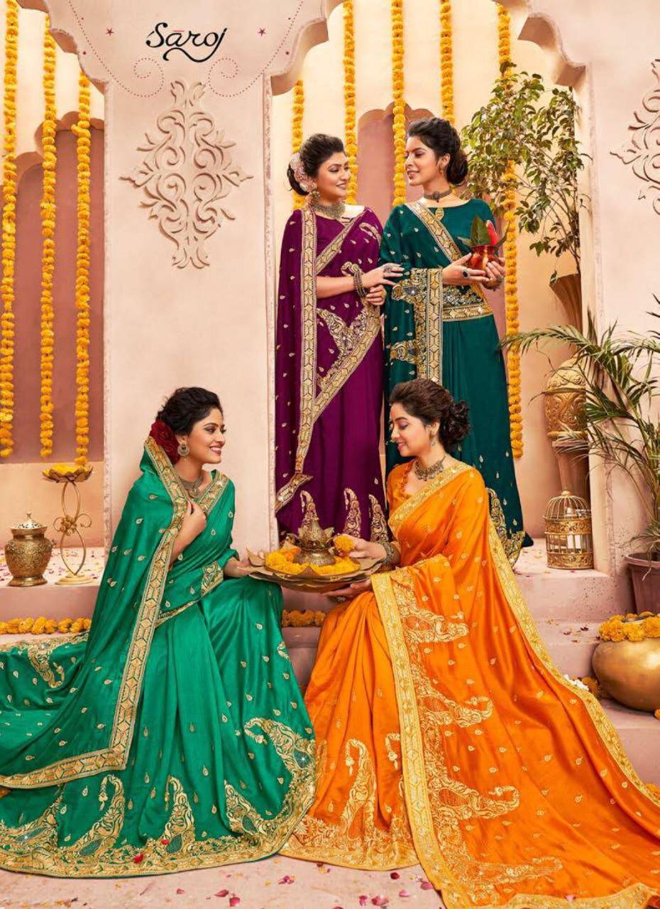Buy Online Rajdhani By Saroj Sarees Wholesale Supplier And Dealer Gujarat 6 Pcs of Full Catalogue at Wholesale Price. Looking for Rajdhani By Saroj Sarees Wholesale Supplier And Dealer Gujarat Full Catalouge at Best Price? Buy Now Rajdhani By Saroj Sarees Wholesale Supplier And Dealer Gujarat at Wholesale Rate of Rs 9210 with Total 6 Pcs from authroized dealer and supplier of SAROJ SAREE Brand. Cost of Each piece is just only Rs 1535 which is very low and affordable price to resale the product in your retail store ,This is Surat based Wholesale Supplier & Dealer of SAROJ SAREE Brand. Click on Brand name to Know more about SAROJ SAREE Brand's products.Call or Whatsapp on 9898838984 for booking or enquiry