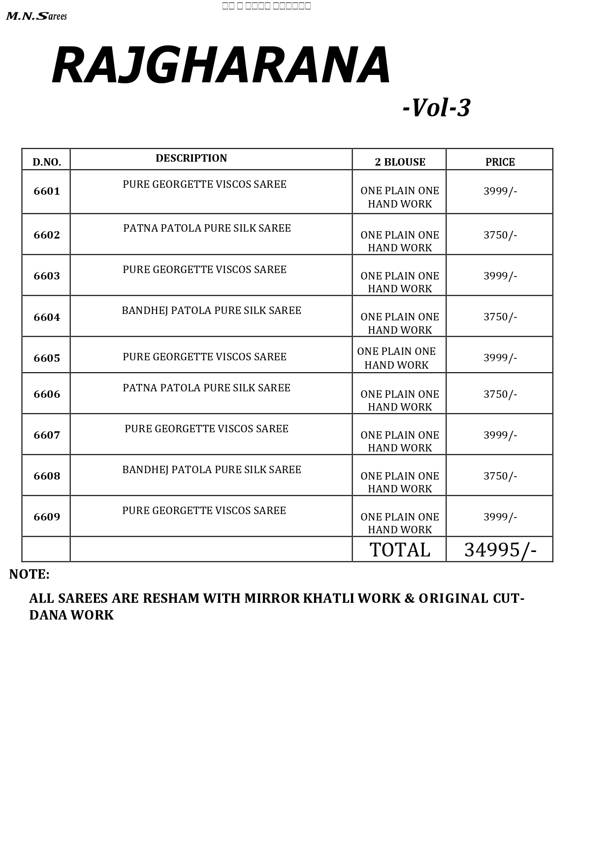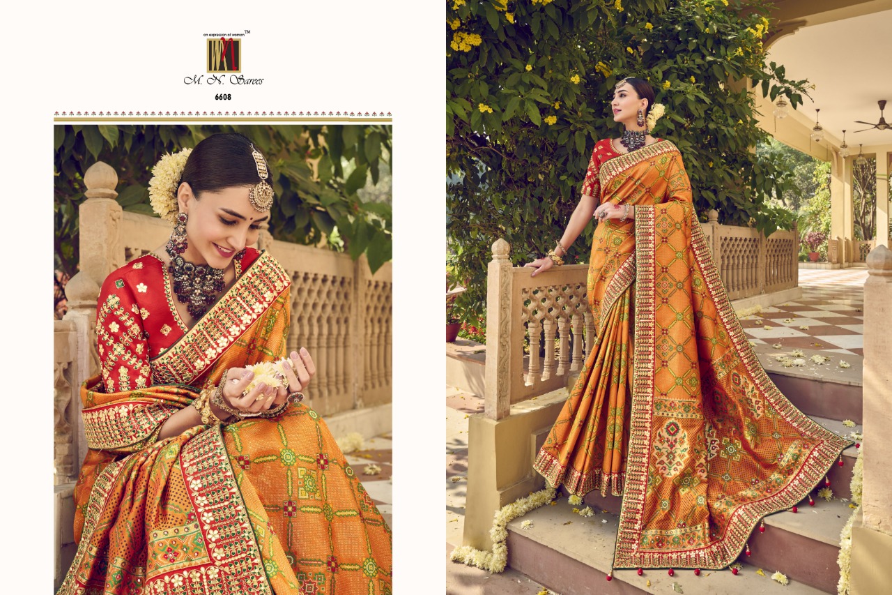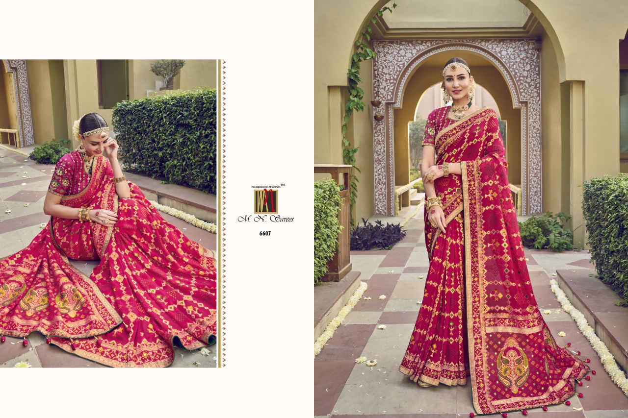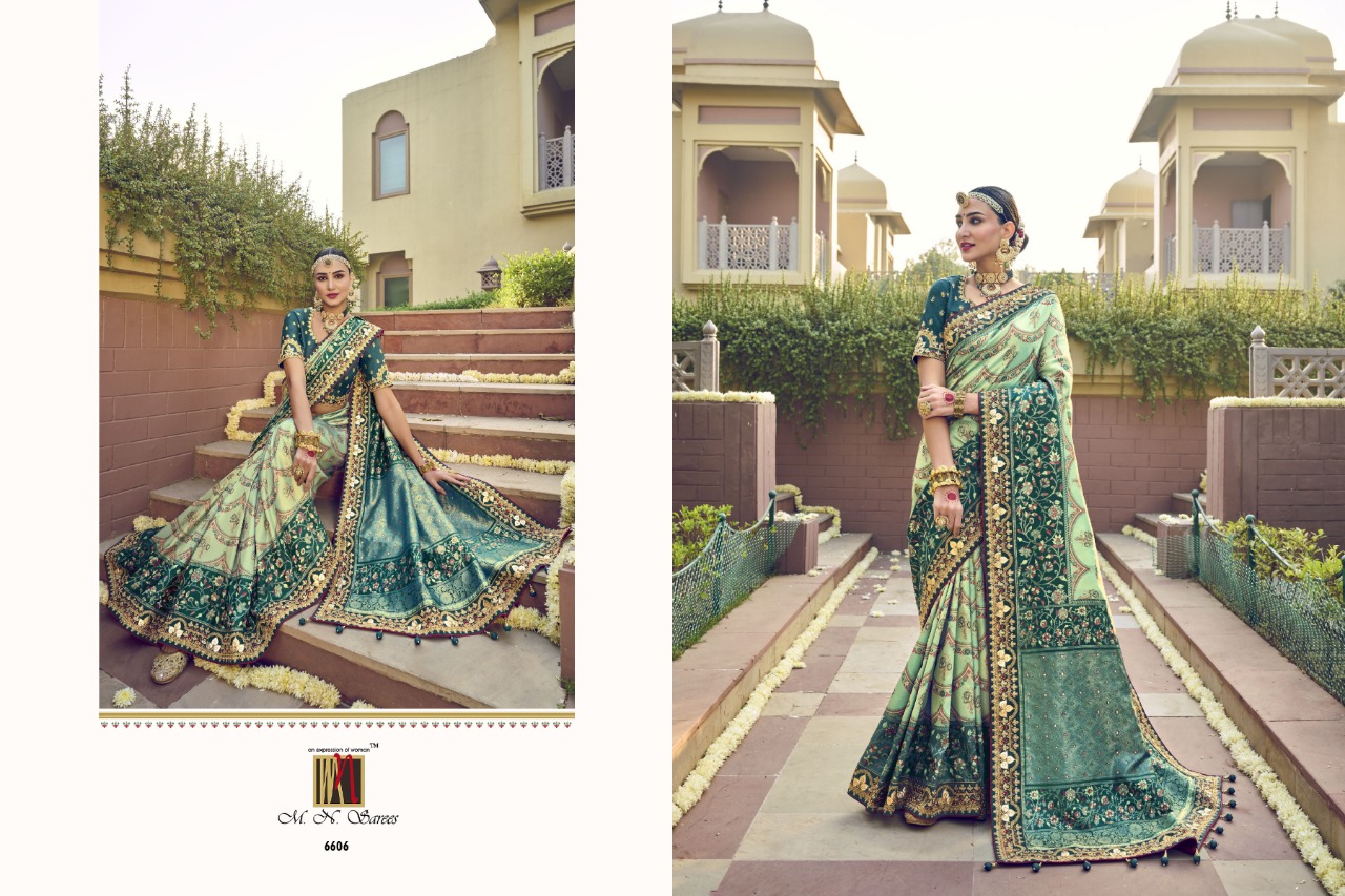 Buy Online Rajgharana Vol 3 6600 Series By Mn Sarees 9 Pcs of Full Catalogue at Wholesale Price. Looking for Rajgharana Vol 3 6600 Series By Mn Sarees Full Catalouge at Best Price? Buy Now Rajgharana Vol 3 6600 Series By Mn Sarees at Wholesale Rate of Rs 0 with Total 9 Pcs from authroized dealer and supplier of MN SAREES Brand. Cost of Each piece is just only Rs 0 which is very low and affordable price to resale the product in your retail store ,This is Surat based Wholesale Supplier & Dealer of MN SAREES Brand. Click on Brand name to Know more about MN SAREES Brand's products.Call or Whatsapp on 9898838984 for booking or enquiry