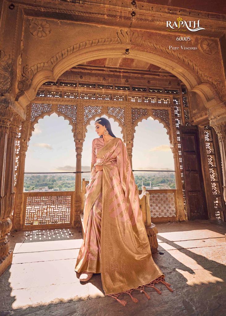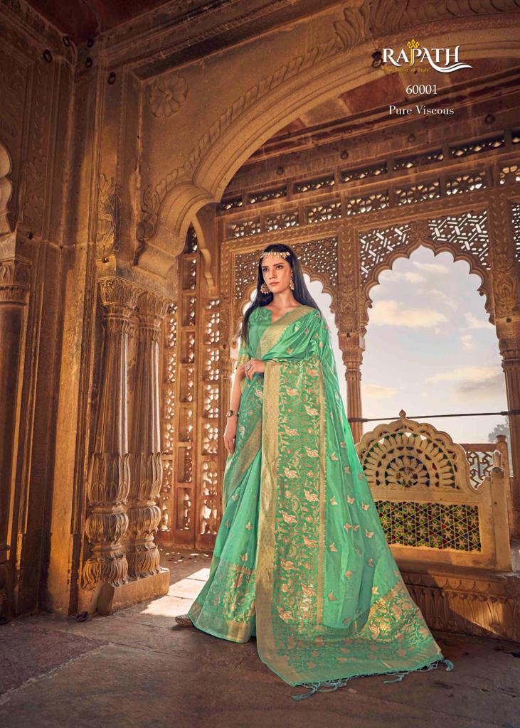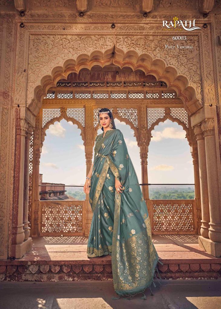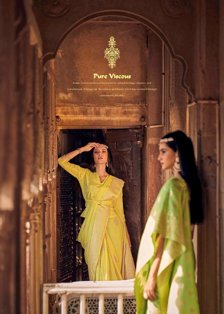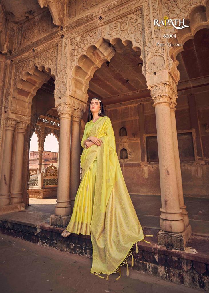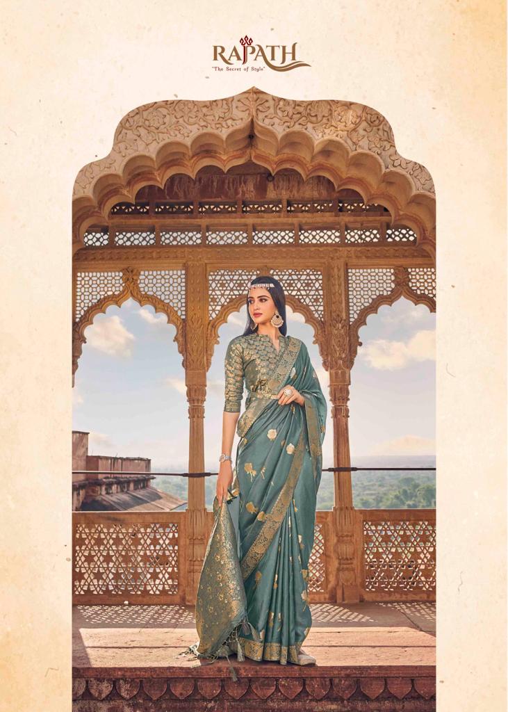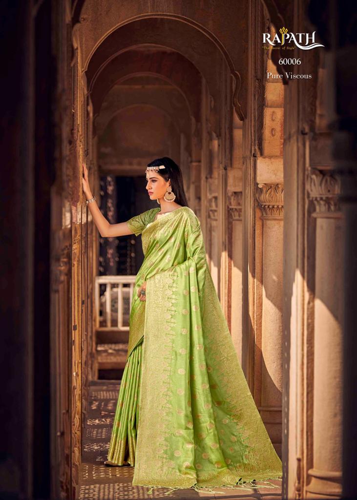 BRAND NAME Â? *RAJPATH* CATALOG NAME Â? *AMIRAH* SERIES Â? 6001 TO 6006 RAJPATH AMIRAH SERIES 6001 to 6006 FABRICS - PURE VISCOUS SILK WITH HAND DYING RATE Â? 2295/- PER PCS GST 5% EXTRA SINGLE AVAIALABLE 100+ BOOK YOUR ORDER NOW |