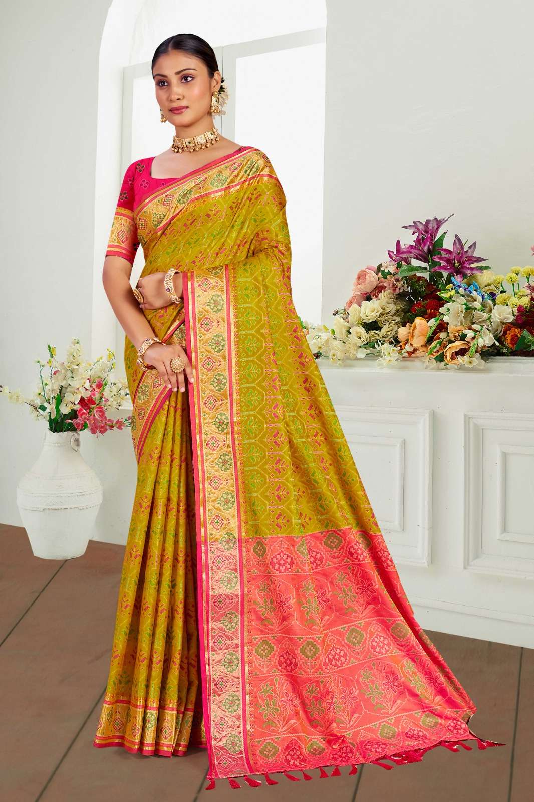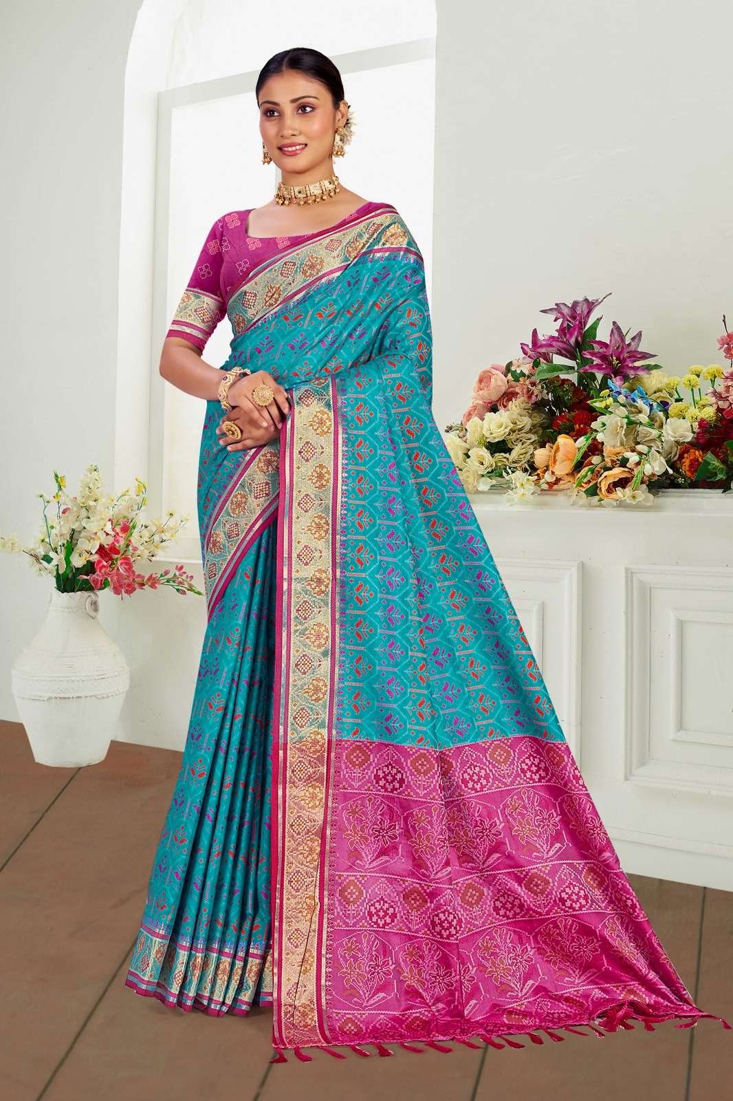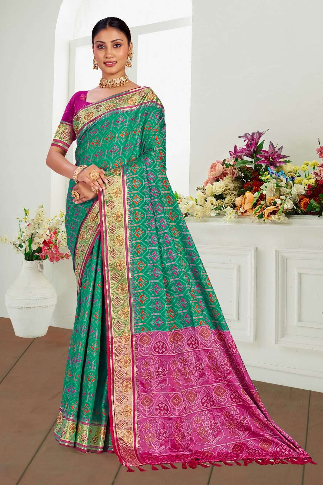Catalogue Name : RAJSHAHI PATOLA VOL-2 Saree Fabric : PATOLA SILK Blouse Fabric : PATOLA SILK Price : 1075 GST 5% Extra. Single available. Ready to ship. |