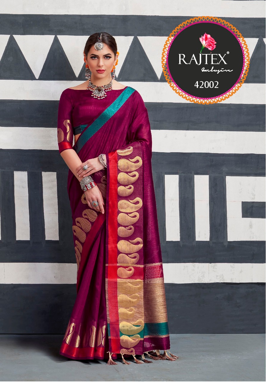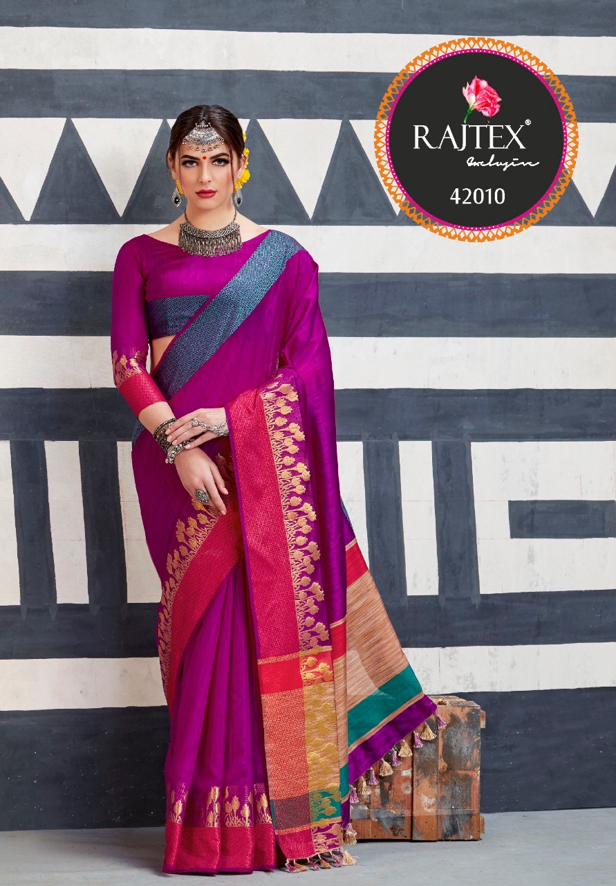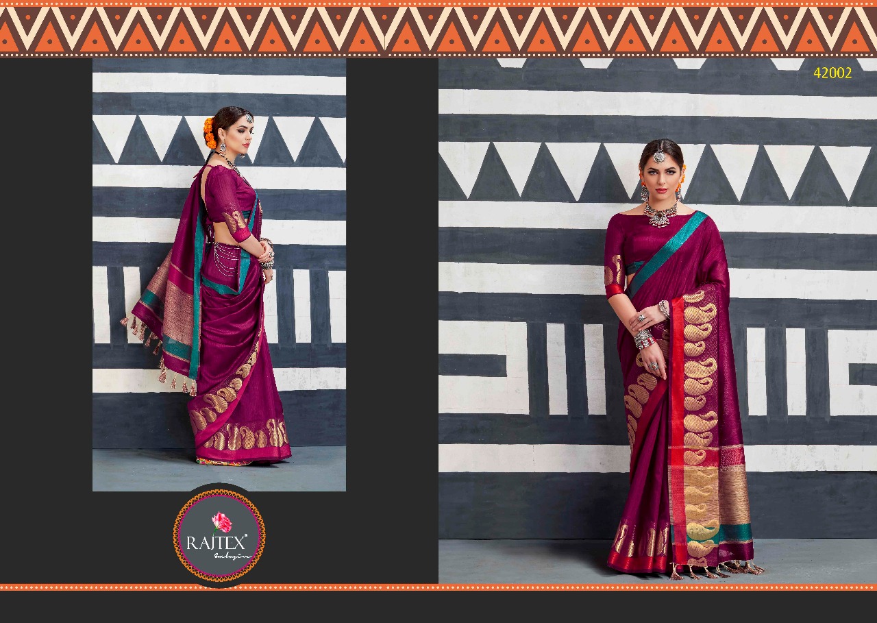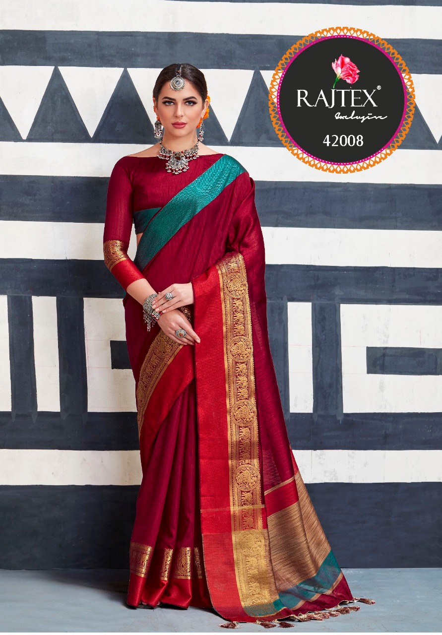 Buy Online Rajtex Kaleera Silk 42001 Series Naylon Silk Saree 10 Pcs of Full Catalogue at Wholesale Price. Looking for Rajtex Kaleera Silk 42001 Series Naylon Silk Saree Full Catalouge at Best Price? Buy Now Rajtex Kaleera Silk 42001 Series Naylon Silk Saree at Wholesale Rate of Rs 11500 with Total 10 Pcs from authroized dealer and supplier of RAJTEX Brand. Cost of Each piece is just only Rs 1150 which is very low and affordable price to resale the product in your retail store ,This is Surat based Wholesale Supplier & Dealer of RAJTEX Brand. Click on Brand name to Know more about RAJTEX Brand's products.Call or Whatsapp on 9898838984 for booking or enquiry