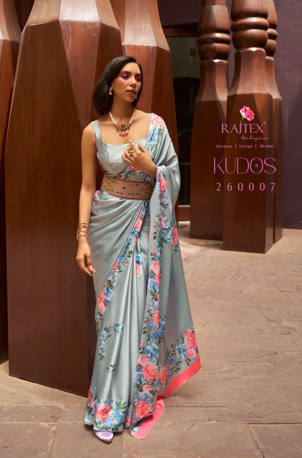 Rajtex New Catalog Kudos Digital Satin Crape Sarees Collection Surat