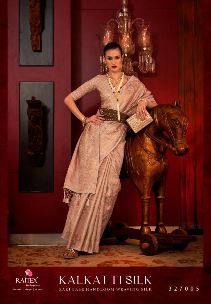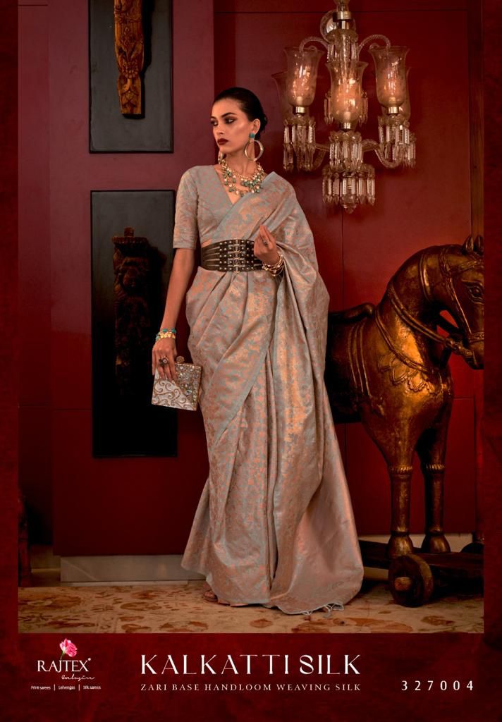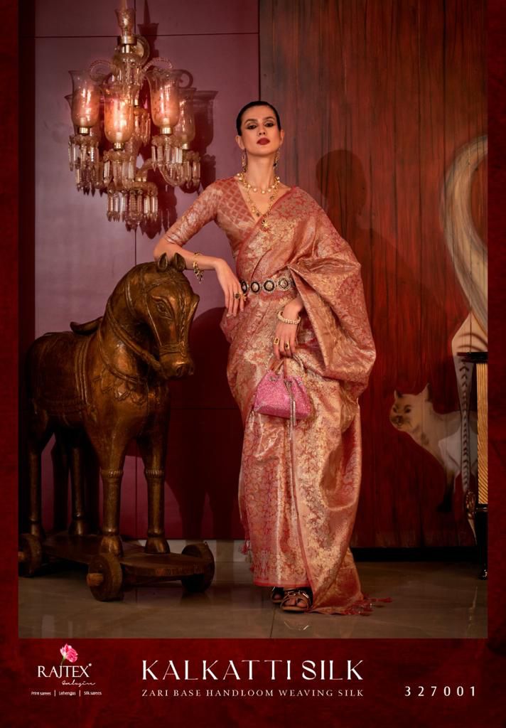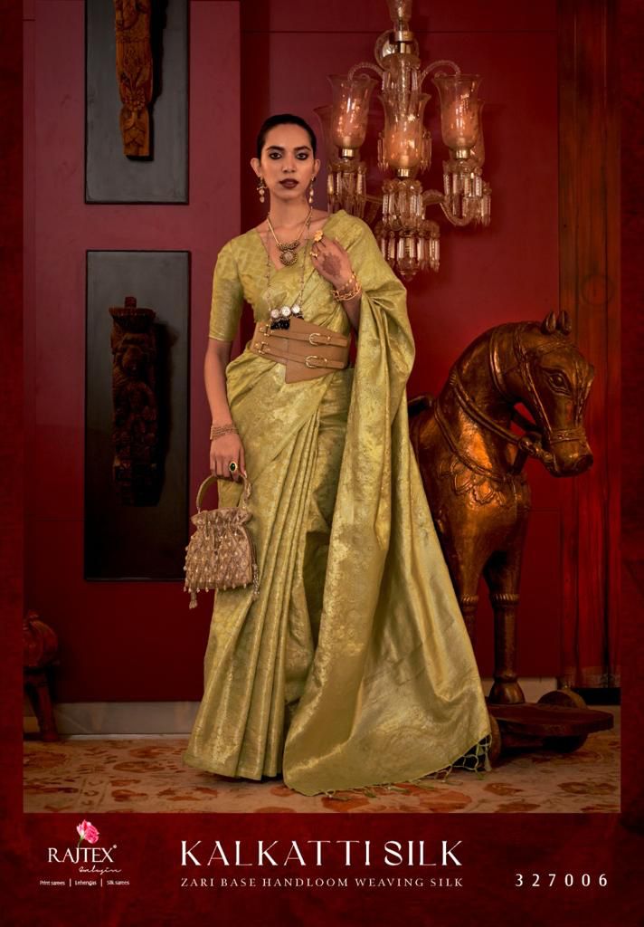 *Brand - Rajtex* *Series - 327001 to 327008* *|| JAI GANESHAI NAMAH ||* *|| JAI MATA DI ||* *BRAND - RAJTEX FABRICS* ?? *LAUNCHING NOW* ?? *KALKATTI SILK* I *ZARI BASE_HANDLOOM WEAVING SILK* *PRICE - 1890?* per pcs *GST 5% SHIP EXTRA* *Ready To Dispatch* *Give your orders in group if any.* 100+single |