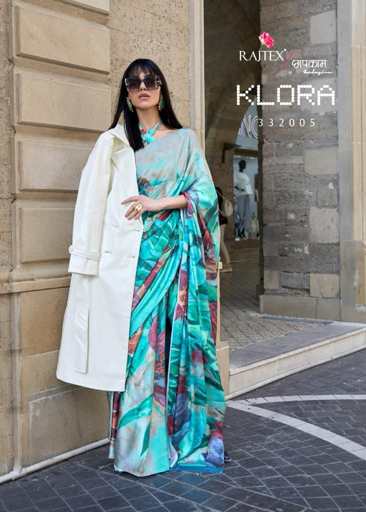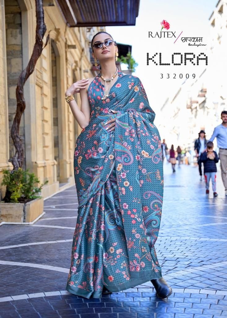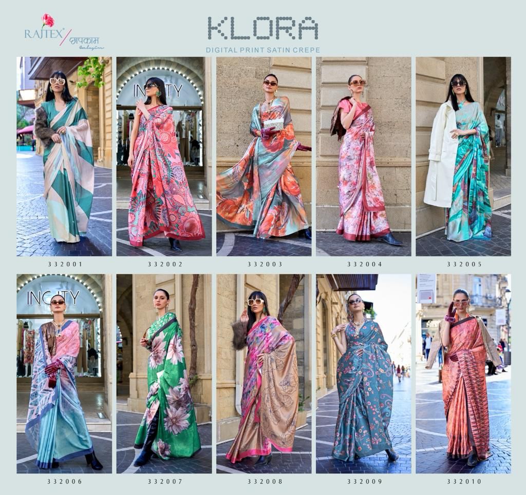 Rajtex New Launching Klora Digital Print Satin Creep Sarees Collection Surat