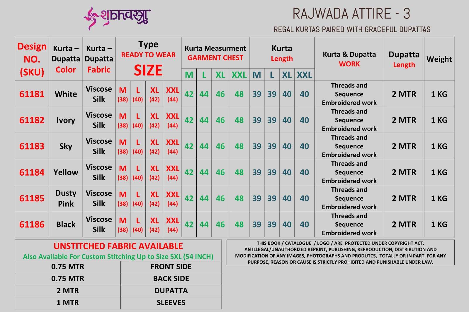 💰 *RAJWADA ATTIRE - 3 • RATE LIST (KURTA + DUPATTA)* 💰