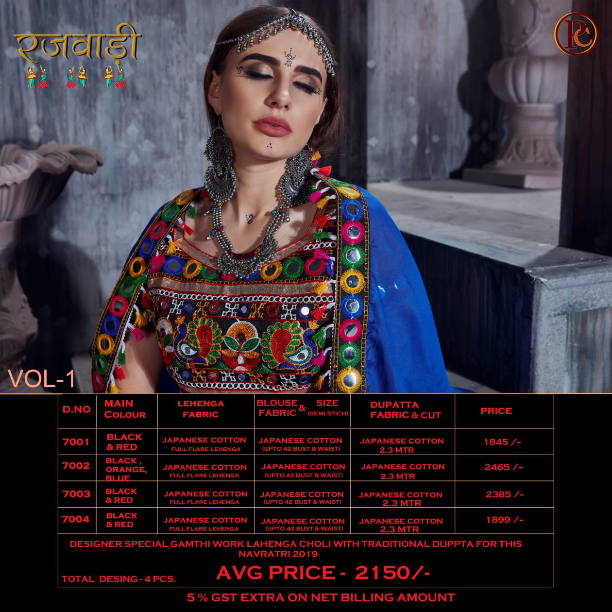 Buy Online Rajwadi Lehnga Choli By Pc Traditional Lehnga Choli Wholesale Supplier And Dealer Surat 4 Pcs of Full Catalogue at Wholesale Price. Looking for Rajwadi Lehnga Choli By Pc Traditional Lehnga Choli Wholesale Supplier And Dealer Surat Full Catalouge at Best Price? Buy Now Rajwadi Lehnga Choli By Pc Traditional Lehnga Choli Wholesale Supplier And Dealer Surat at Wholesale Rate of Rs 8600 with Total 4 Pcs from authroized dealer and supplier of Brand. Cost of Each piece is just only Rs 2150 which is very low and affordable price to resale the product in your retail store ,This is Surat based Wholesale Supplier & Dealer of Brand. Click on Brand name to Know more about Brand's products.Call or Whatsapp on 9898838984 for booking or enquiry