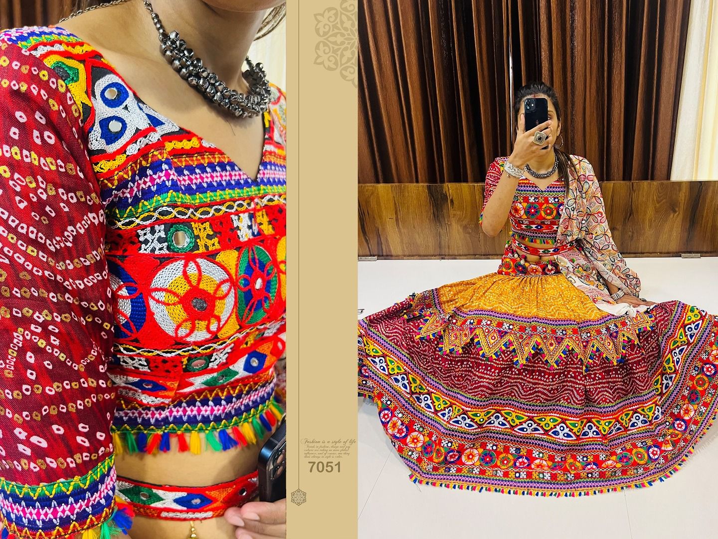 Buy Online Rajwadi New Design 7051 Aawiya Navratri Special Traditional Chaniya Choli Collection 5 Pcs of Full Catalogue at Wholesale Price. Looking for Rajwadi New Design 7051 Aawiya Navratri Special Traditional Chaniya Choli Collection Full Catalouge at Best Price? Buy Now Rajwadi New Design 7051 Aawiya Navratri Special Traditional Chaniya Choli Collection at Wholesale Rate of Rs 7895 with Total 5 Pcs from authroized dealer and supplier of Brand. Cost of Each piece is just only Rs 1579 which is very low and affordable price to resale the product in your retail store ,This is Surat based Wholesale Supplier & Dealer of Brand. Click on Brand name to Know more about Brand's products.Call or Whatsapp on 9898838984 for booking or enquiry