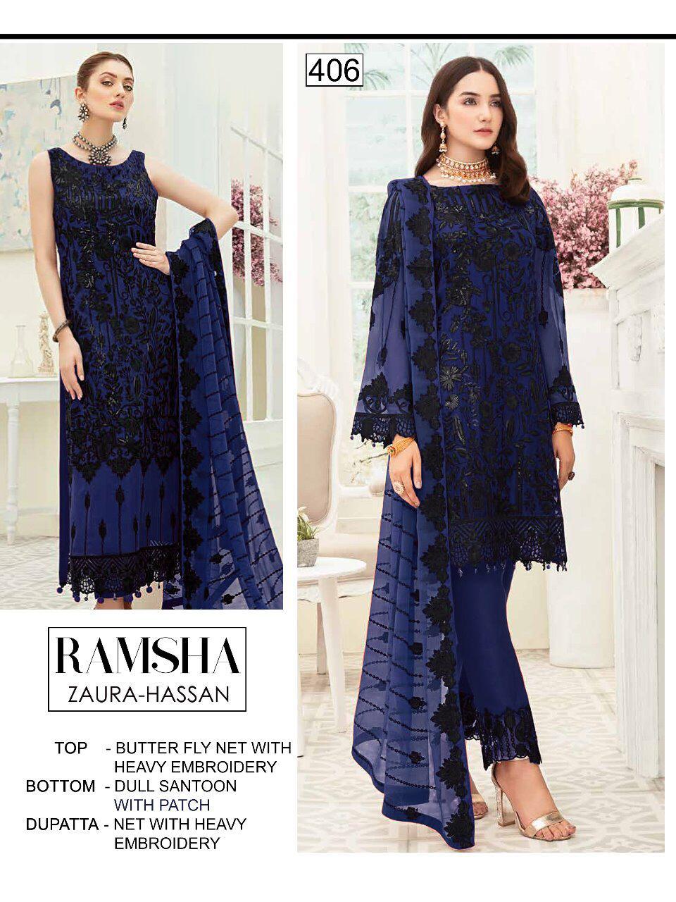 Buy Online Ramsha By Zaura Hassan Pakistani Suits Wholesale Supplier And Dealer Gujarat 4 Pcs of Full Catalogue at Wholesale Price. Looking for Ramsha By Zaura Hassan Pakistani Suits Wholesale Supplier And Dealer Gujarat Full Catalouge at Best Price? Buy Now Ramsha By Zaura Hassan Pakistani Suits Wholesale Supplier And Dealer Gujarat at Wholesale Rate of Rs 5180 with Total 4 Pcs from authroized dealer and supplier of Brand. Cost of Each piece is just only Rs 1295 which is very low and affordable price to resale the product in your retail store ,This is Surat based Wholesale Supplier & Dealer of Brand. Click on Brand name to Know more about Brand's products.Call or Whatsapp on 9898838984 for booking or enquiry