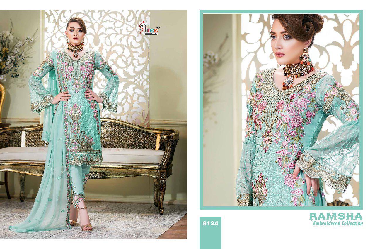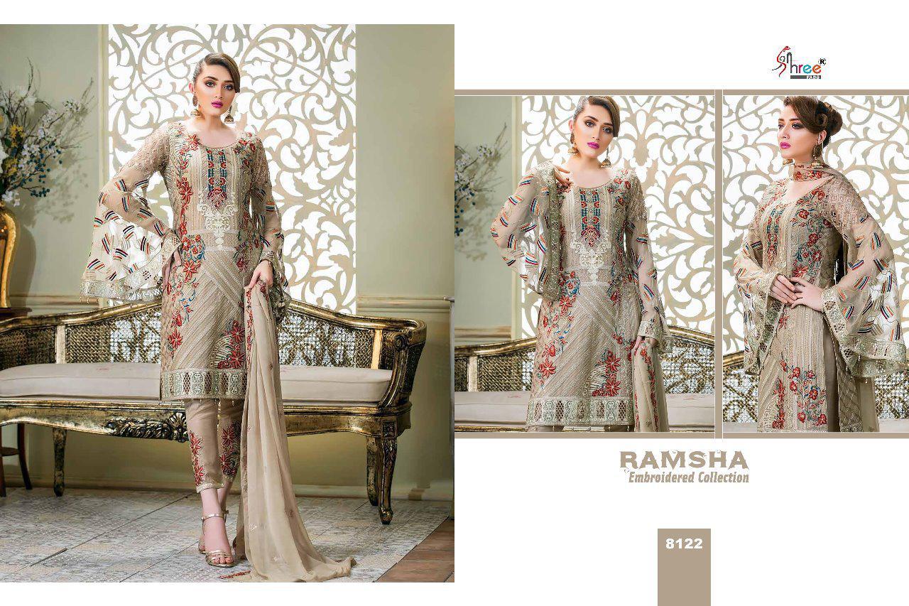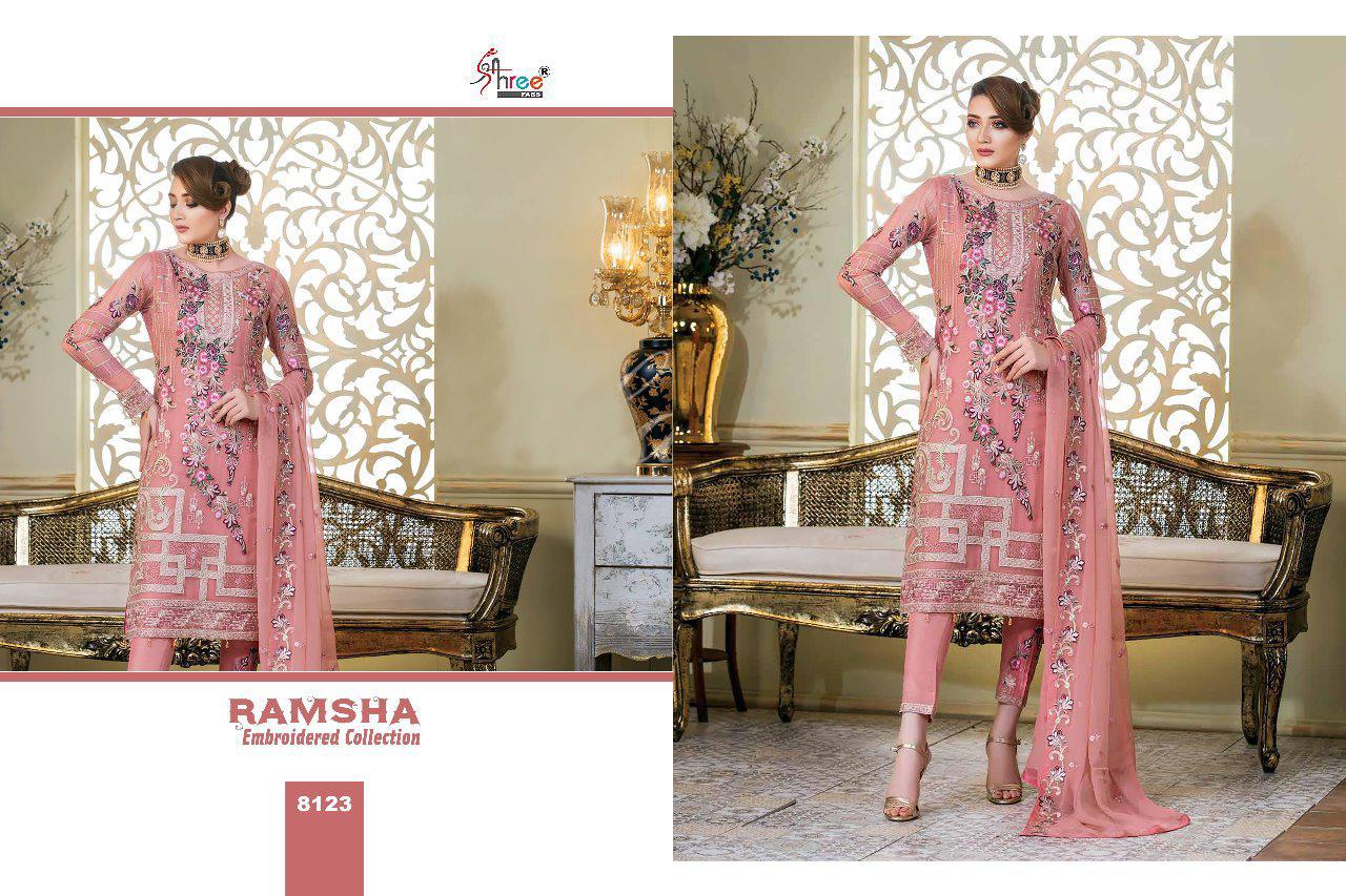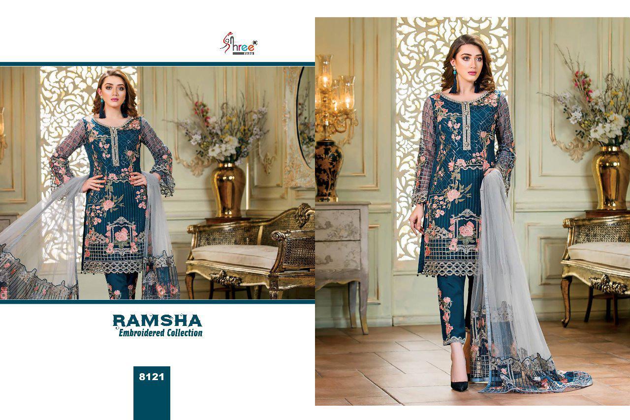 Ramsha Embroidery Collection By Shree Fabs 8121 Series Fancy Georegtte Pakistani Salwar Kameez Catlog Wholesaler Surat