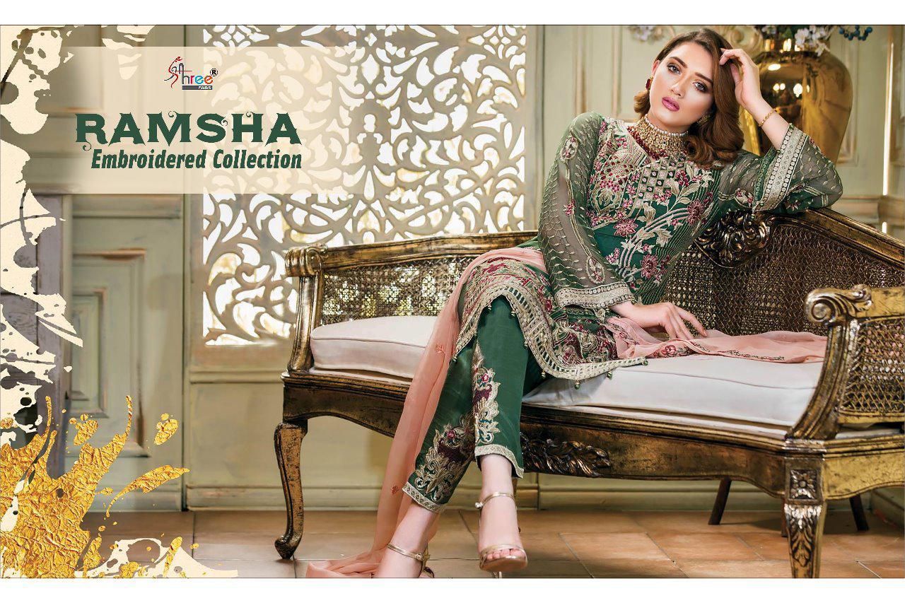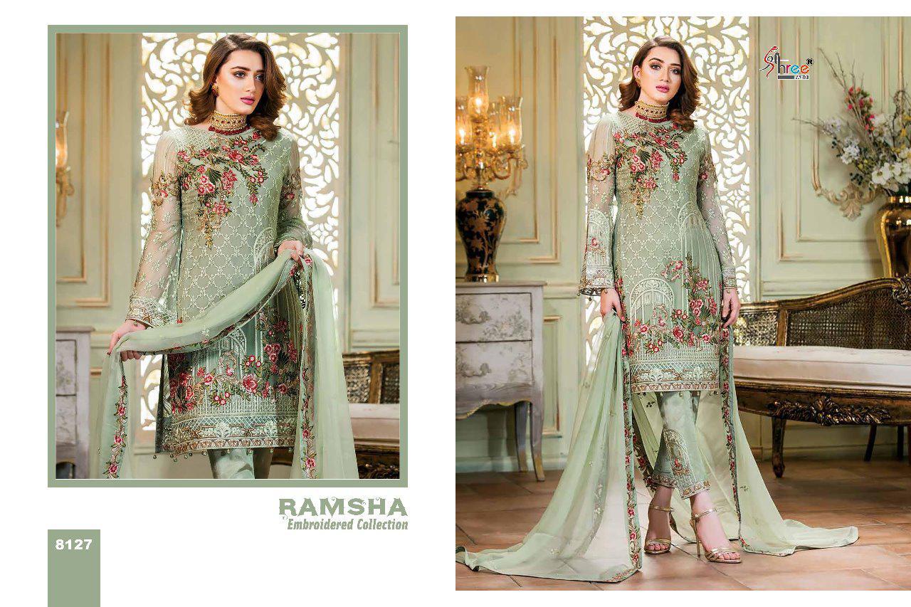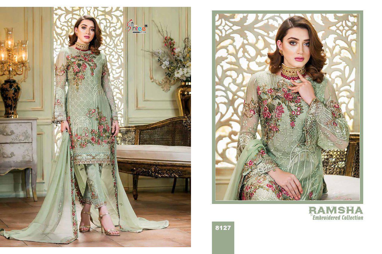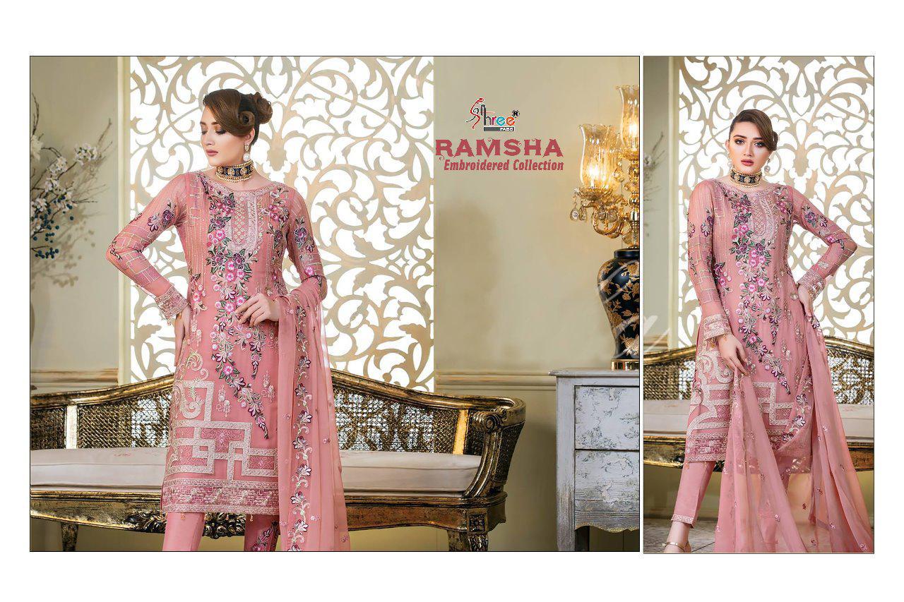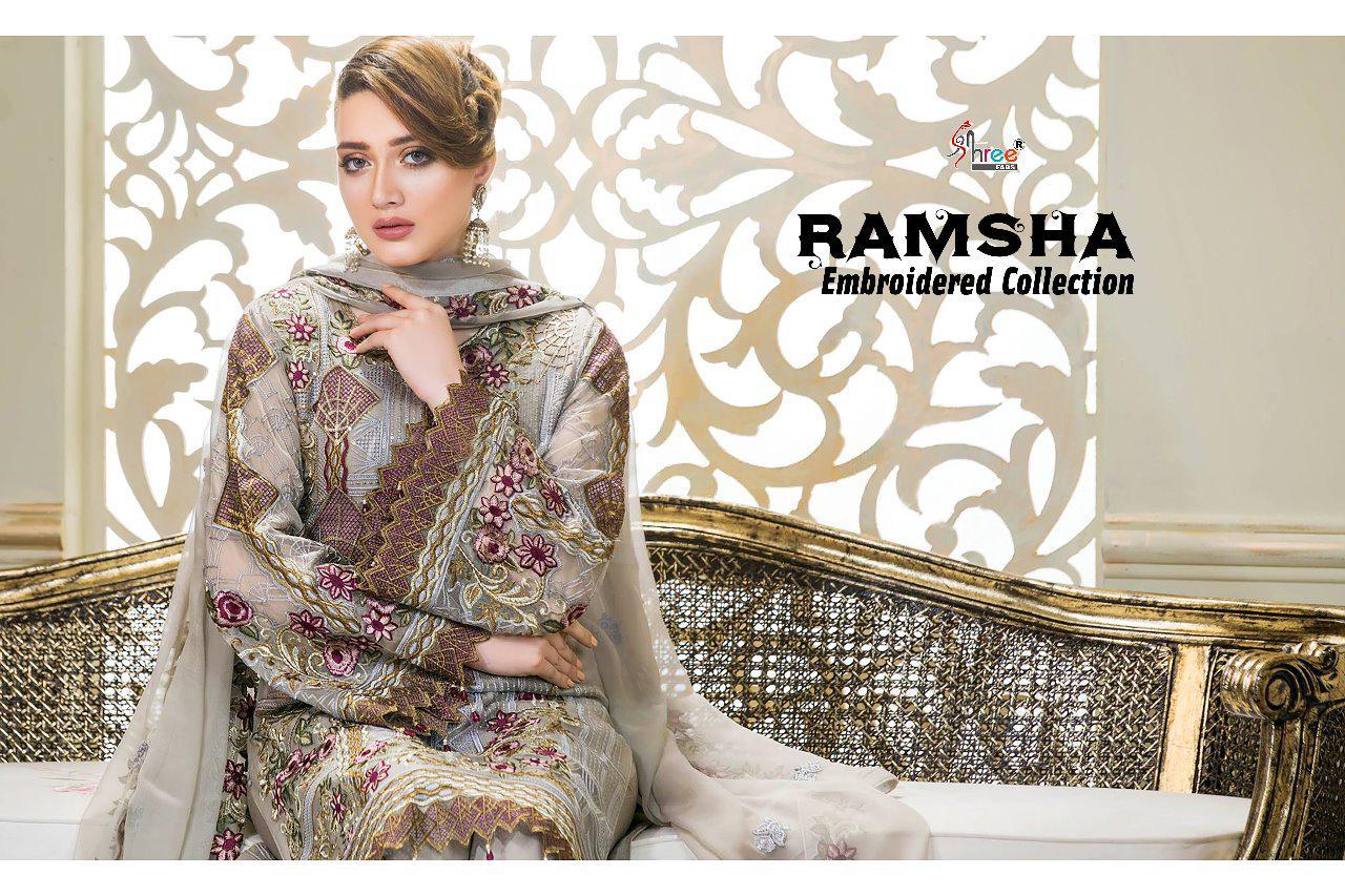 Ramsha Embroidery Collection By Shree Fabs 8121 Series Fancy Georegtte Pakistani Salwar Kameez Catlog Wholesaler Surat