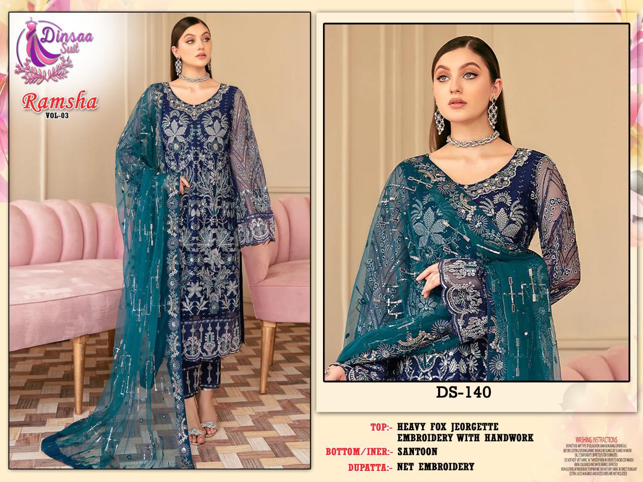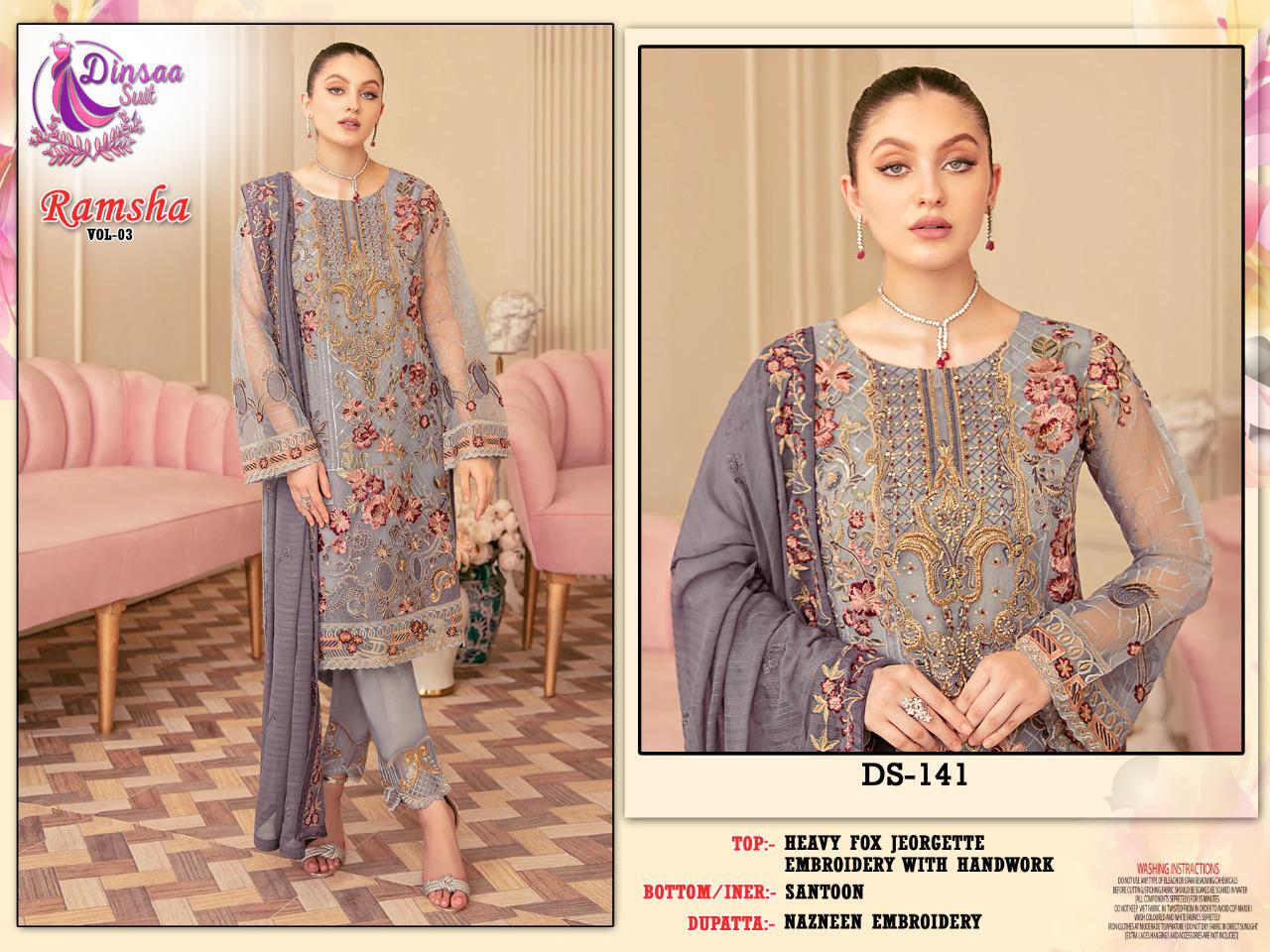 Ramsha Hit Vol 3 By Dinsaa Suit D No 139 To 141 Pakistani Collection Single Available Wholesaler Surat Gujarat India