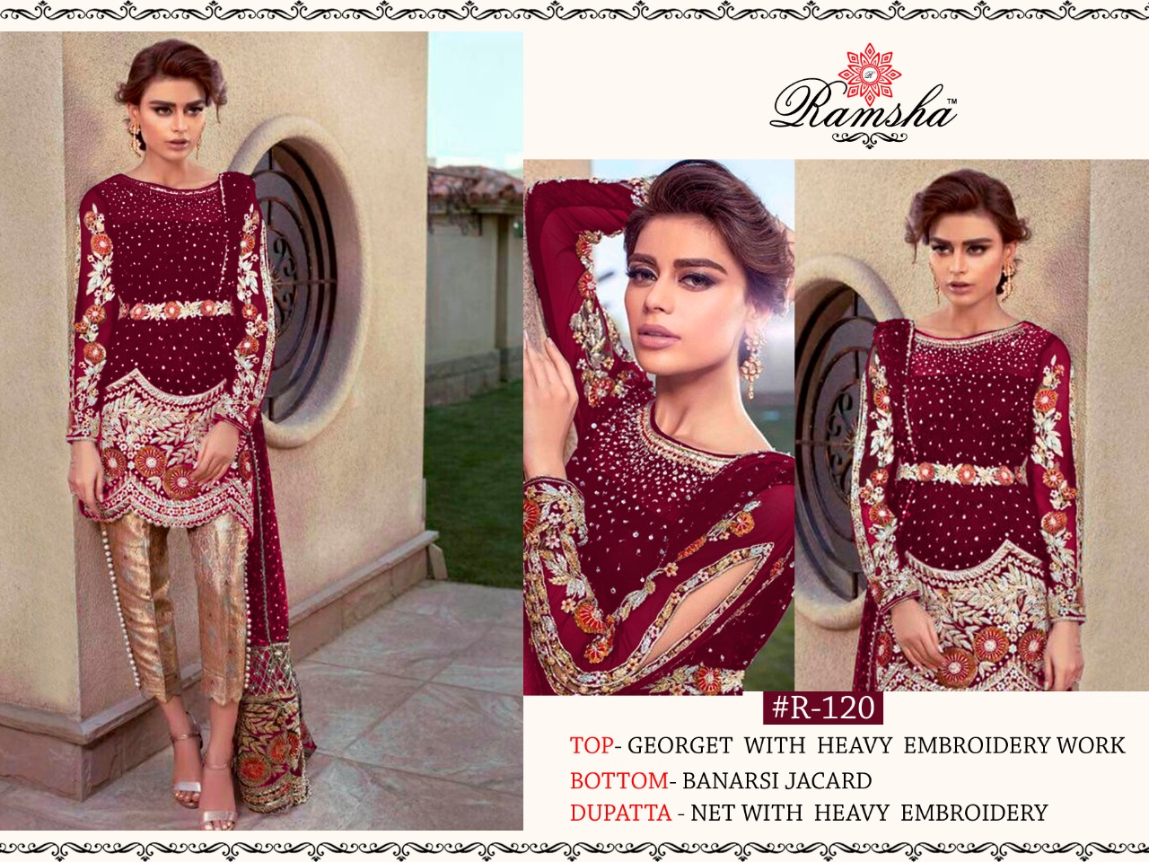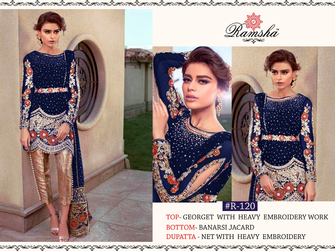 Buy Online Ramsha R 120 Colours Pakistani Suits Wholesale Set And Single Wholesale Supplier Surat 4 Pcs of Full Catalogue at Wholesale Price. Looking for Ramsha R 120 Colours Pakistani Suits Wholesale Set And Single Wholesale Supplier Surat Full Catalouge at Best Price? Buy Now Ramsha R 120 Colours Pakistani Suits Wholesale Set And Single Wholesale Supplier Surat at Wholesale Rate of Rs 5940 with Total 4 Pcs from authroized dealer and supplier of Brand. Cost of Each piece is just only Rs 1485 which is very low and affordable price to resale the product in your retail store ,This is Surat based Wholesale Supplier & Dealer of Brand. Click on Brand name to Know more about Brand's products.Call or Whatsapp on 9898838984 for booking or enquiry
