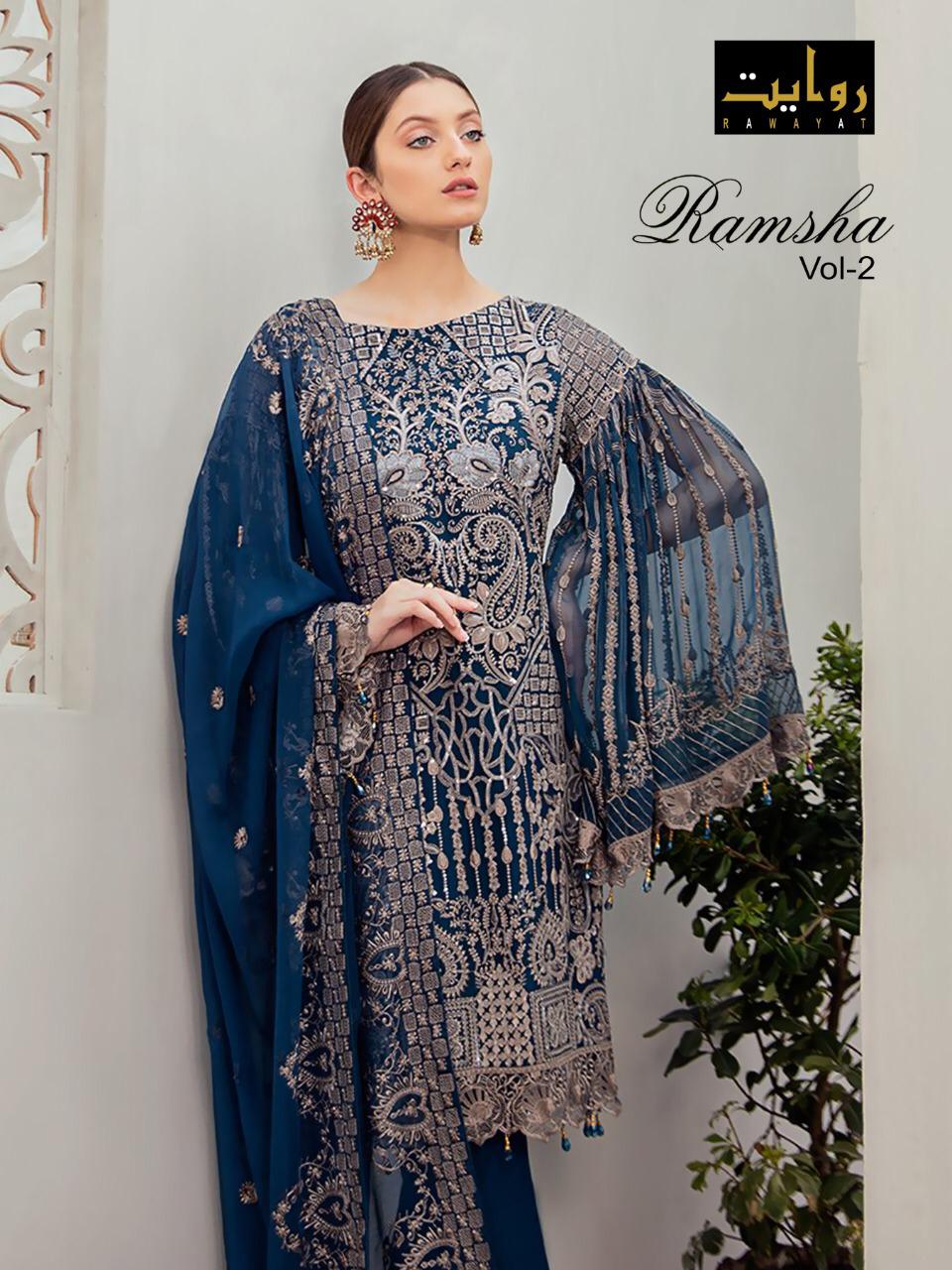 Ramsha Vol 2 Chiffon 2020 By Rawayat Pakistani Suits Wholesale Supplier And Dealer Gujarat