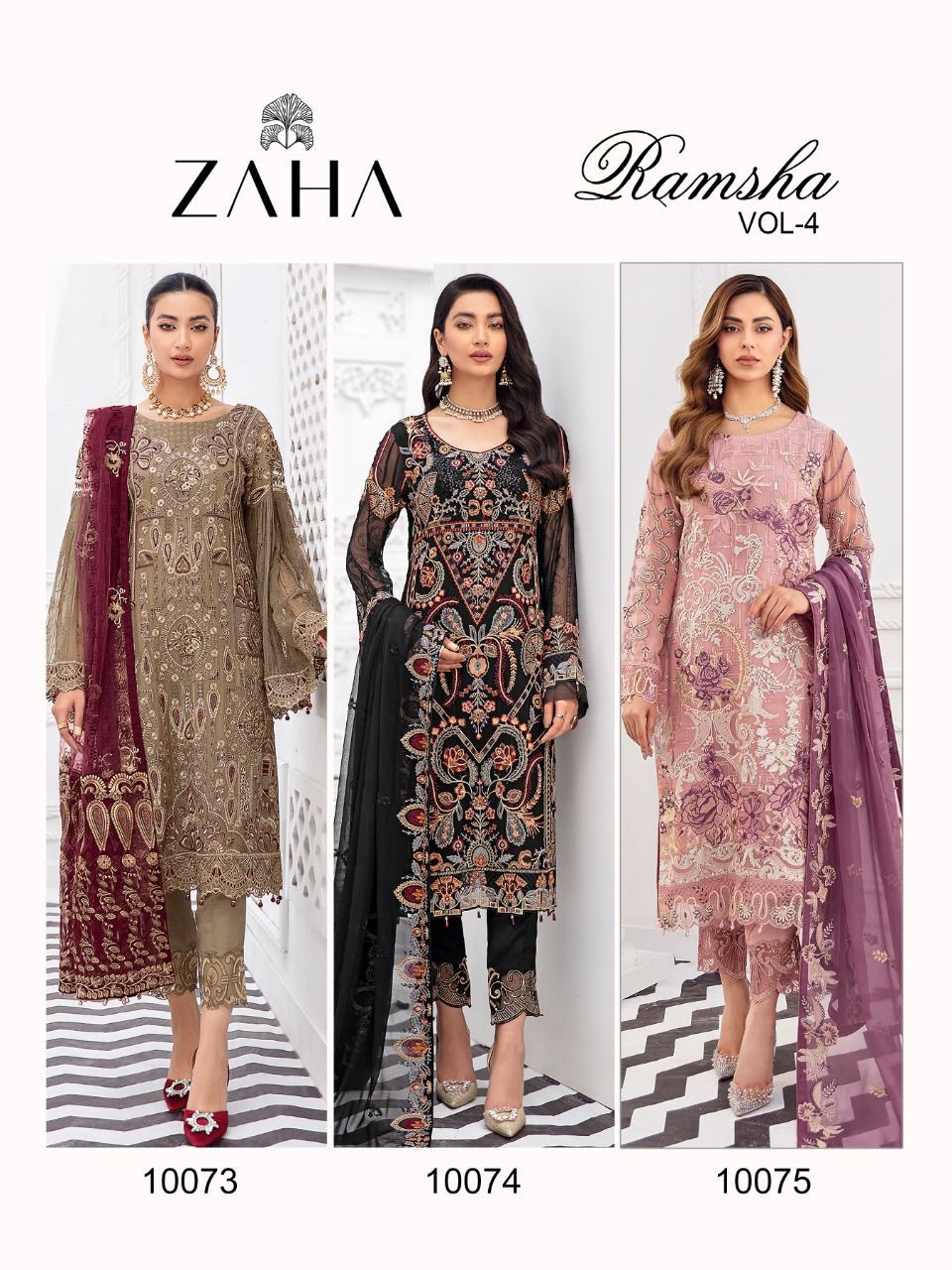 Buy Online Ramsha Vol 4 By Zaha Georgette Pakistani Suit Single Available Wholesaler Surat Gujarat 3 Pcs of Full Catalogue at Wholesale Price. Looking for Ramsha Vol 4 By Zaha Georgette Pakistani Suit Single Available Wholesaler Surat Gujarat Full Catalouge at Best Price? Buy Now Ramsha Vol 4 By Zaha Georgette Pakistani Suit Single Available Wholesaler Surat Gujarat at Wholesale Rate of Rs 3750 with Total 3 Pcs from authroized dealer and supplier of Brand. Cost of Each piece is just only Rs 1250 which is very low and affordable price to resale the product in your retail store ,This is Surat based Wholesale Supplier & Dealer of Brand. Click on Brand name to Know more about Brand's products.Call or Whatsapp on 9898838984 for booking or enquiry