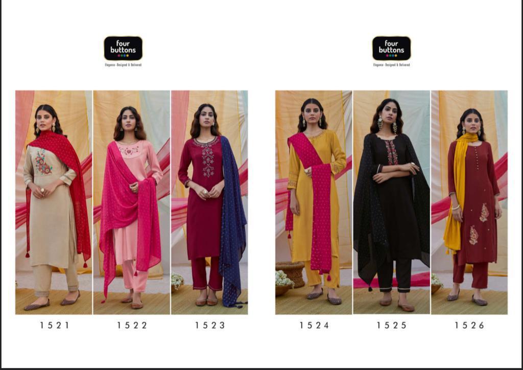 Buy Online Rang By Four Buttons Kurtis With Bottom Wholesale Supplier And Dealer Surat 6 Pcs of Full Catalogue at Wholesale Price. Looking for Rang By Four Buttons Kurtis With Bottom Wholesale Supplier And Dealer Surat Full Catalouge at Best Price? Buy Now Rang By Four Buttons Kurtis With Bottom Wholesale Supplier And Dealer Surat at Wholesale Rate of Rs 7794 with Total 6 Pcs from authroized dealer and supplier of FOUR BUTTONS Brand. Cost of Each piece is just only Rs 1299 which is very low and affordable price to resale the product in your retail store ,This is Surat based Wholesale Supplier & Dealer of FOUR BUTTONS Brand. Click on Brand name to Know more about FOUR BUTTONS Brand's products.Call or Whatsapp on 9898838984 for booking or enquiry