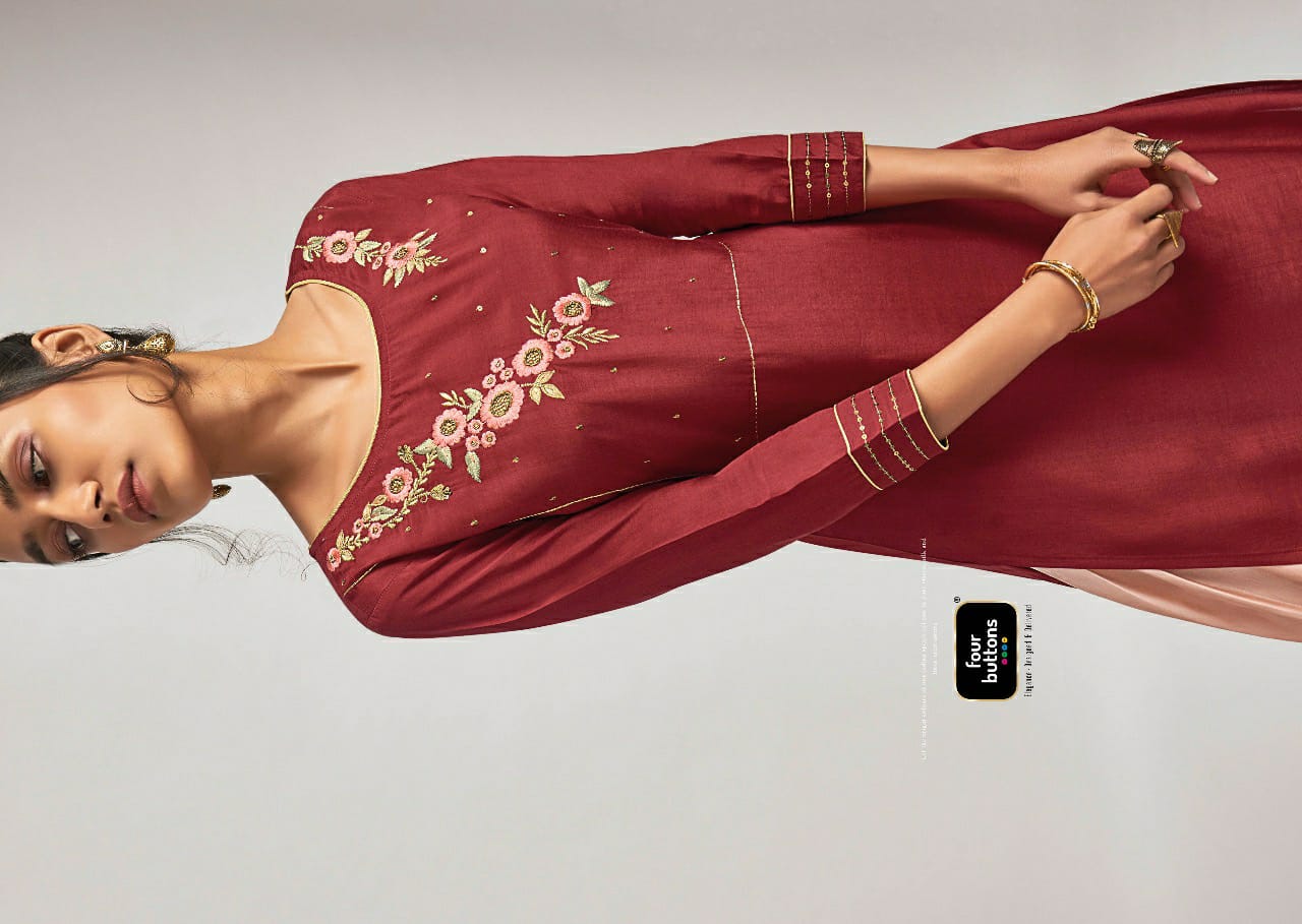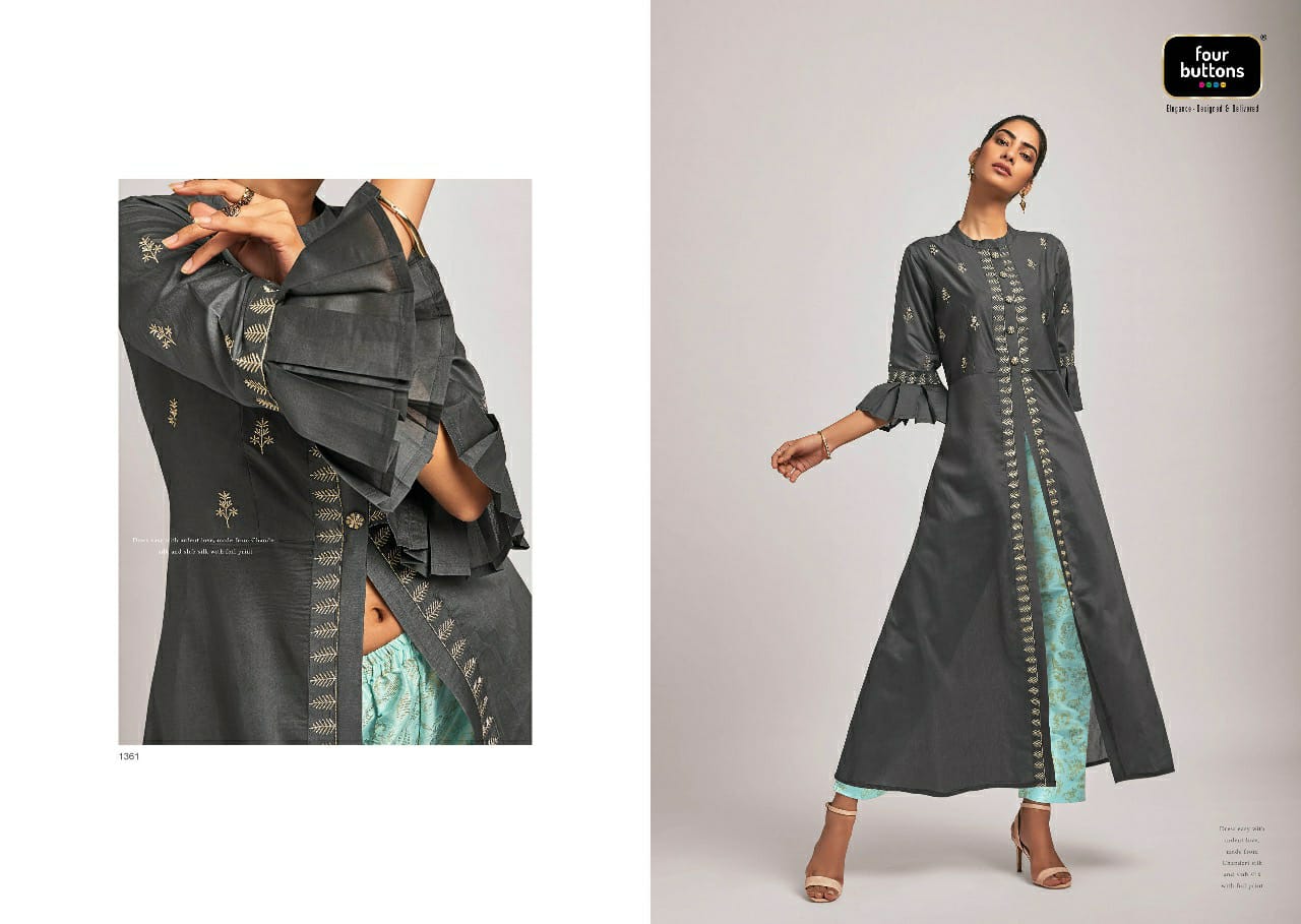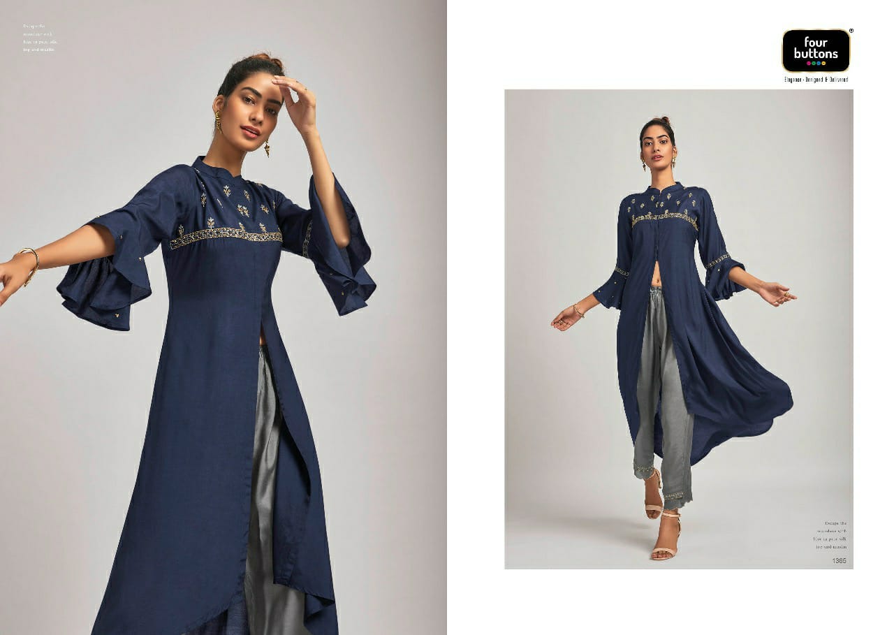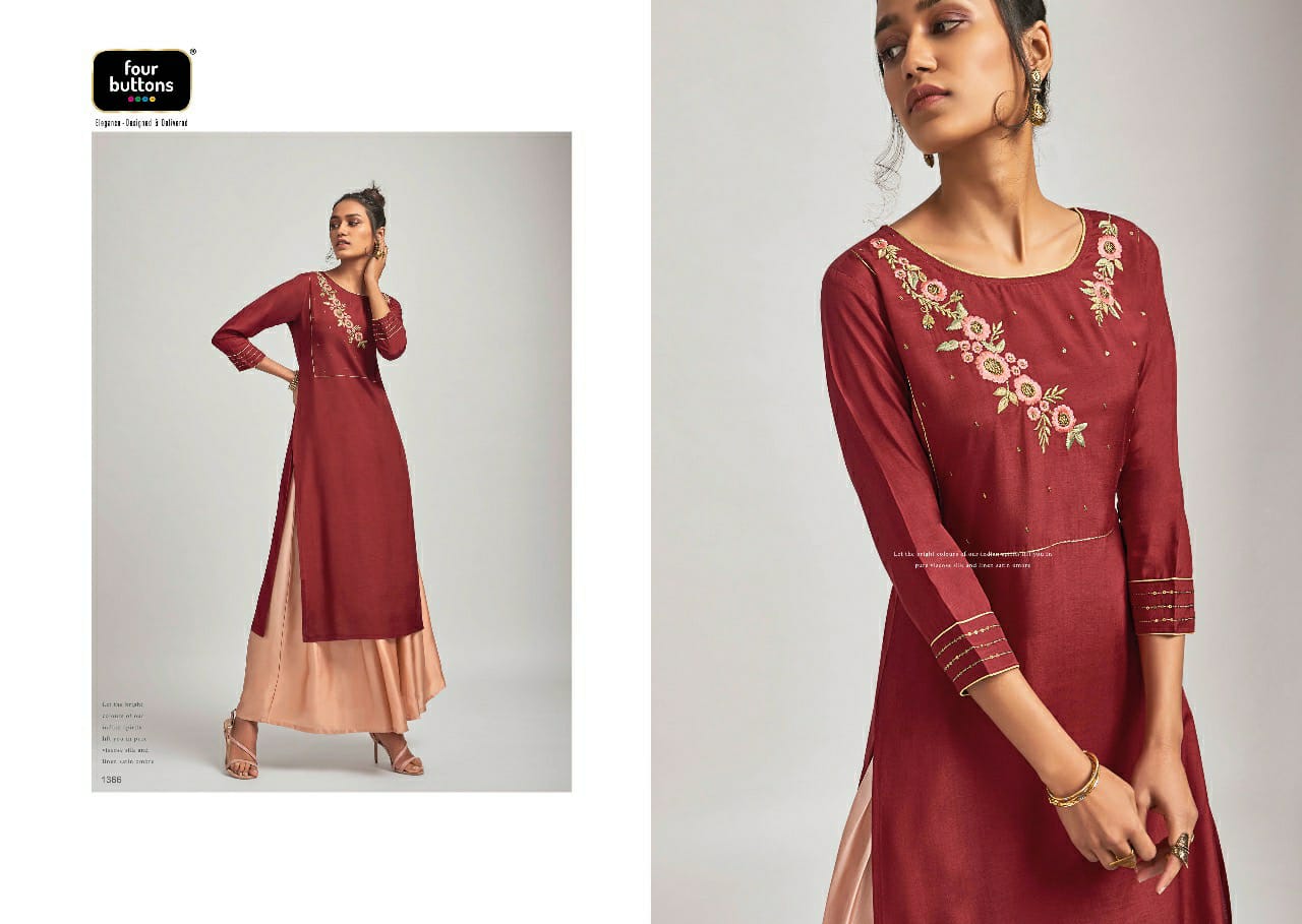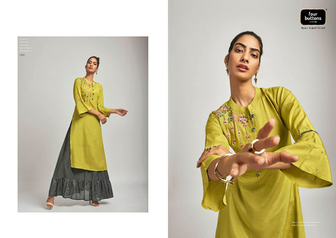 Buy Online Rang By Four Buttons Viscose Designer Kurtis With Plazzo Wholesale Supplier Surat 6 Pcs of Full Catalogue at Wholesale Price. Looking for Rang By Four Buttons Viscose Designer Kurtis With Plazzo Wholesale Supplier Surat Full Catalouge at Best Price? Buy Now Rang By Four Buttons Viscose Designer Kurtis With Plazzo Wholesale Supplier Surat at Wholesale Rate of Rs 7770 with Total 6 Pcs from authroized dealer and supplier of FOUR BUTTONS Brand. Cost of Each piece is just only Rs 1295 which is very low and affordable price to resale the product in your retail store ,This is Surat based Wholesale Supplier & Dealer of FOUR BUTTONS Brand. Click on Brand name to Know more about FOUR BUTTONS Brand's products.Call or Whatsapp on 9898838984 for booking or enquiry