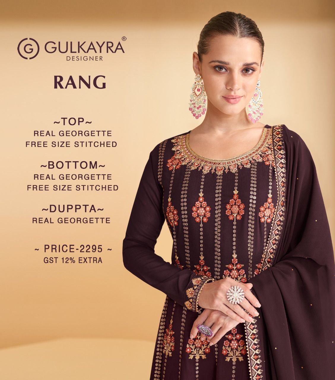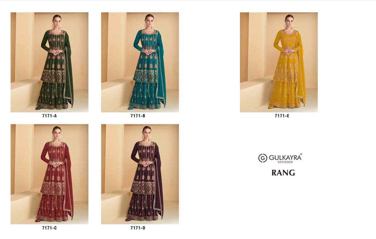 Buy Online Rang By Gulkayra Designer Suits Wholesale Suppliers And Dealer From India 5 Pcs of Full Catalogue at Wholesale Price. Looking for Rang By Gulkayra Designer Suits Wholesale Suppliers And Dealer From India Full Catalouge at Best Price? Buy Now Rang By Gulkayra Designer Suits Wholesale Suppliers And Dealer From India at Wholesale Rate of Rs 11475 with Total 5 Pcs from authroized dealer and supplier of Brand. Cost of Each piece is just only Rs 2295 which is very low and affordable price to resale the product in your retail store ,This is Surat based Wholesale Supplier & Dealer of Brand. Click on Brand name to Know more about Brand's products.Call or Whatsapp on 9898838984 for booking or enquiry