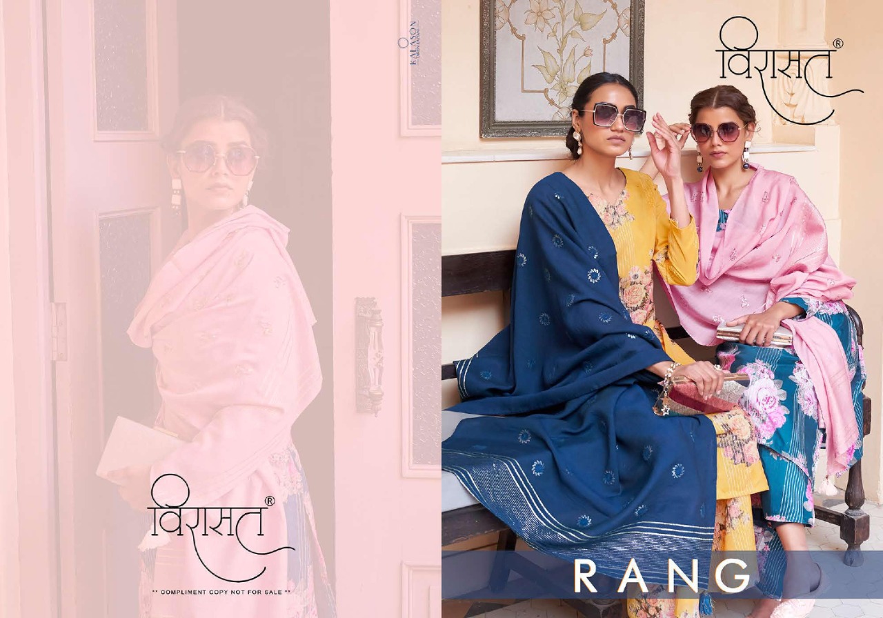 Buy Online Rang By Virasat Readymade Salwar Suit Manufacturer Traders Surat 6 Pcs of Full Catalogue at Wholesale Price. Looking for Rang By Virasat Readymade Salwar Suit Manufacturer Traders Surat Full Catalouge at Best Price? Buy Now Rang By Virasat Readymade Salwar Suit Manufacturer Traders Surat at Wholesale Rate of Rs 7194 with Total 6 Pcs from authroized dealer and supplier of Brand. Cost of Each piece is just only Rs 1199 which is very low and affordable price to resale the product in your retail store ,This is Surat based Wholesale Supplier & Dealer of Brand. Click on Brand name to Know more about Brand's products.Call or Whatsapp on 9898838984 for booking or enquiry