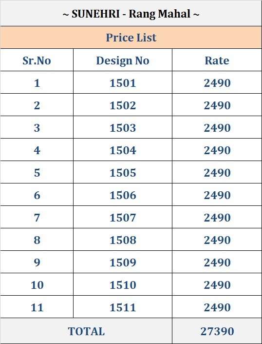 Buy Online Rang Mahal by Kimora Series 1501 To 1511 Dola Silk saree collection manufacturer surat 11 Pcs of Full Catalogue at Wholesale Price. Looking for Rang Mahal by Kimora Series 1501 To 1511 Dola Silk saree collection manufacturer surat Full Catalouge at Best Price? Buy Now Rang Mahal by Kimora Series 1501 To 1511 Dola Silk saree collection manufacturer surat at Wholesale Rate of Rs 0 with Total 11 Pcs from authroized dealer and supplier of KIMORA Brand. Cost of Each piece is just only Rs 0 which is very low and affordable price to resale the product in your retail store ,This is Surat based Wholesale Supplier & Dealer of KIMORA Brand. Click on Brand name to Know more about KIMORA Brand's products.Call or Whatsapp on 9898838984 for booking or enquiry