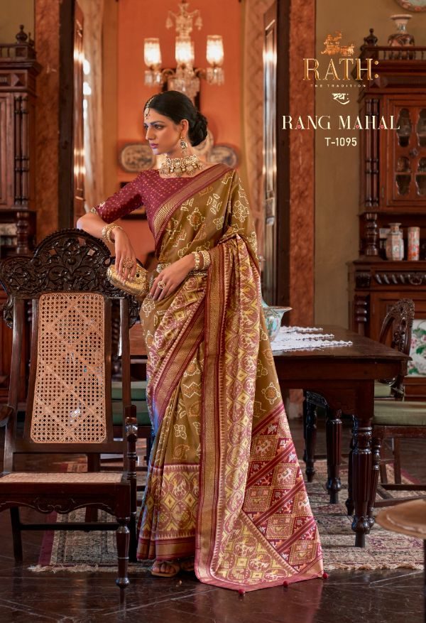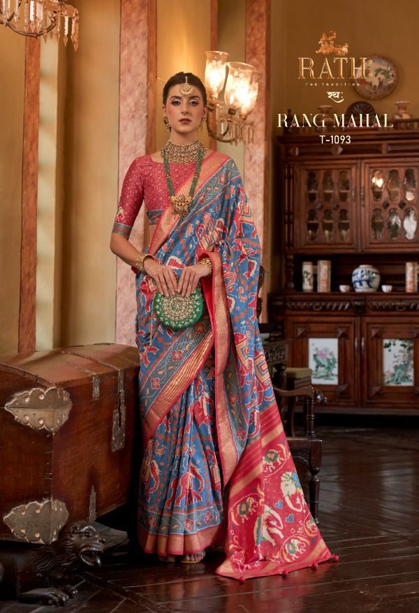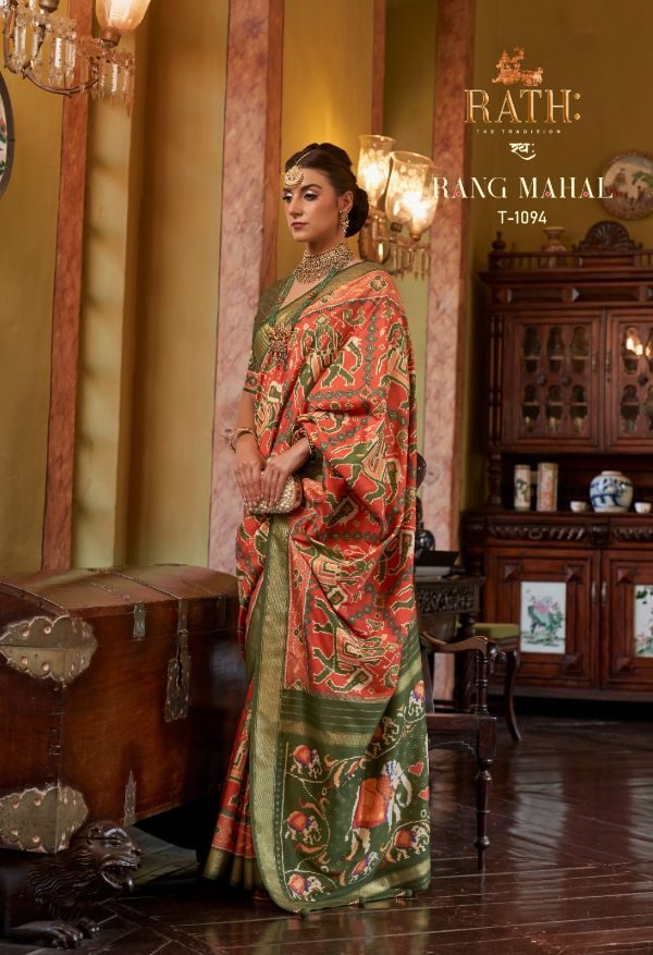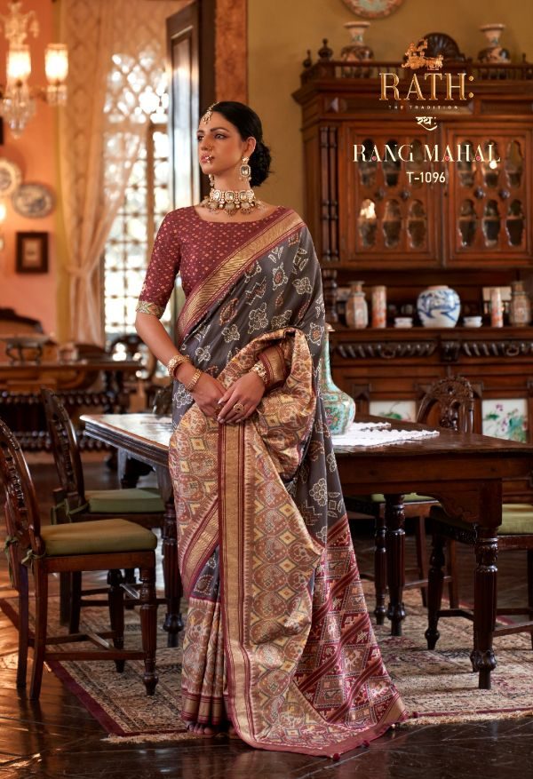 Brand Name : Rath Catalogue Name: Rang -Mahal Series :Mention Series Available Only Price : 1995/- per pcs +5%GST Fabric: P.V Silk With Foil Print Blouse : P.v Silk With Print Occasion : Festival Wear, Party Wear Single available Book your order now 100+ SINGLE |