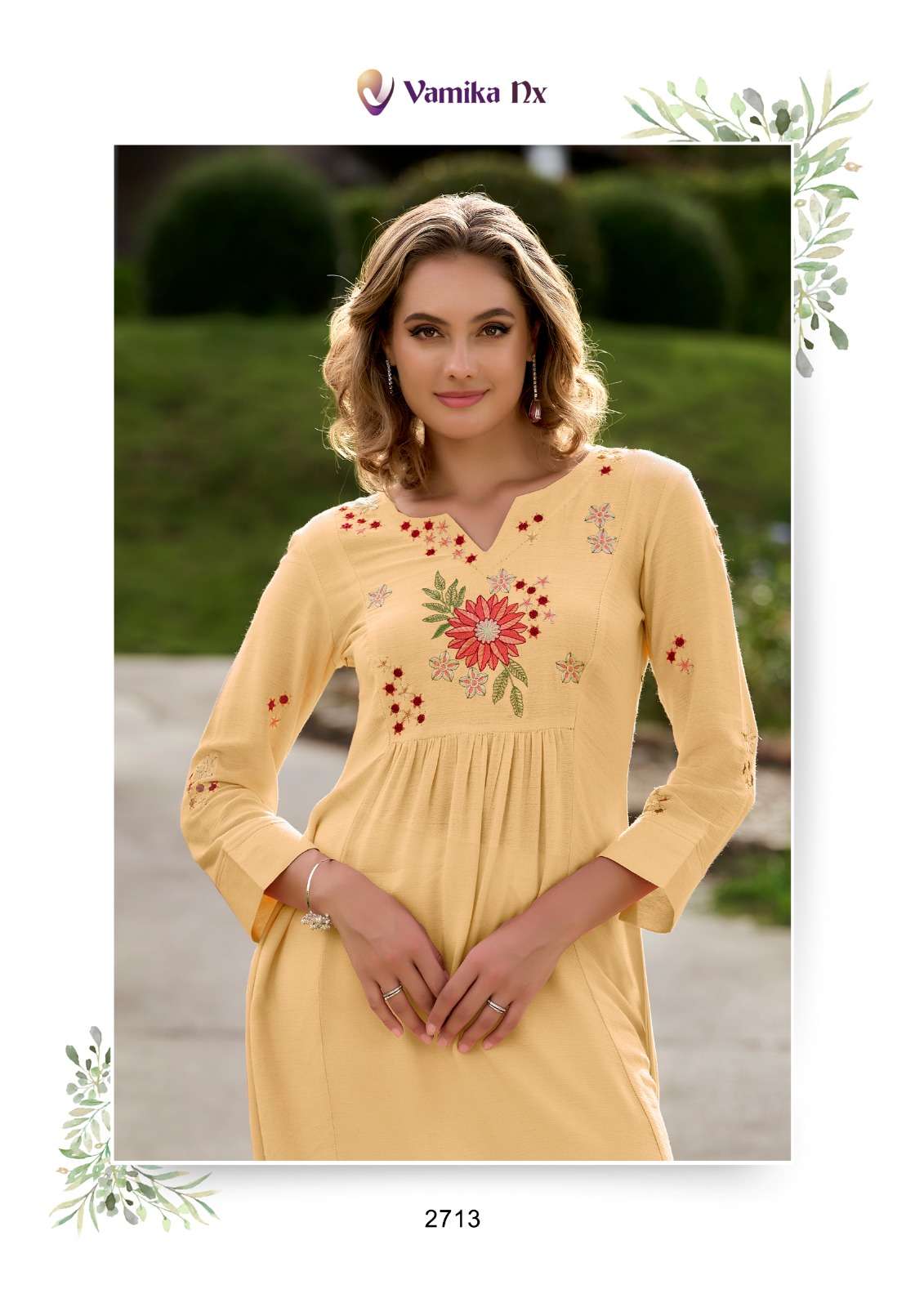 Buy Online Rang Mahal Vol 3 by VAMIKA NX Reyon Kurti collection manufacturer surat * 5 Pcs of Full Catalogue at Wholesale Price. Looking for Rang Mahal Vol 3 by VAMIKA NX Reyon Kurti collection manufacturer surat * Full Catalouge at Best Price? Buy Now Rang Mahal Vol 3 by VAMIKA NX Reyon Kurti collection manufacturer surat * at Wholesale Rate of Rs 3400 with Total 5 Pcs from authroized dealer and supplier of VAMIKA NX Brand. Cost of Each piece is just only Rs 680 which is very low and affordable price to resale the product in your retail store ,This is Surat based Wholesale Supplier & Dealer of VAMIKA NX Brand. Click on Brand name to Know more about VAMIKA NX Brand's products.Call or Whatsapp on 9898838984 for booking or enquiry