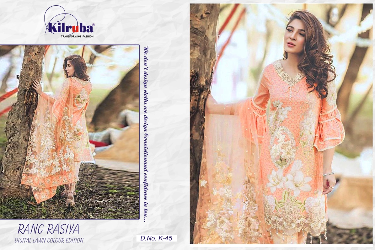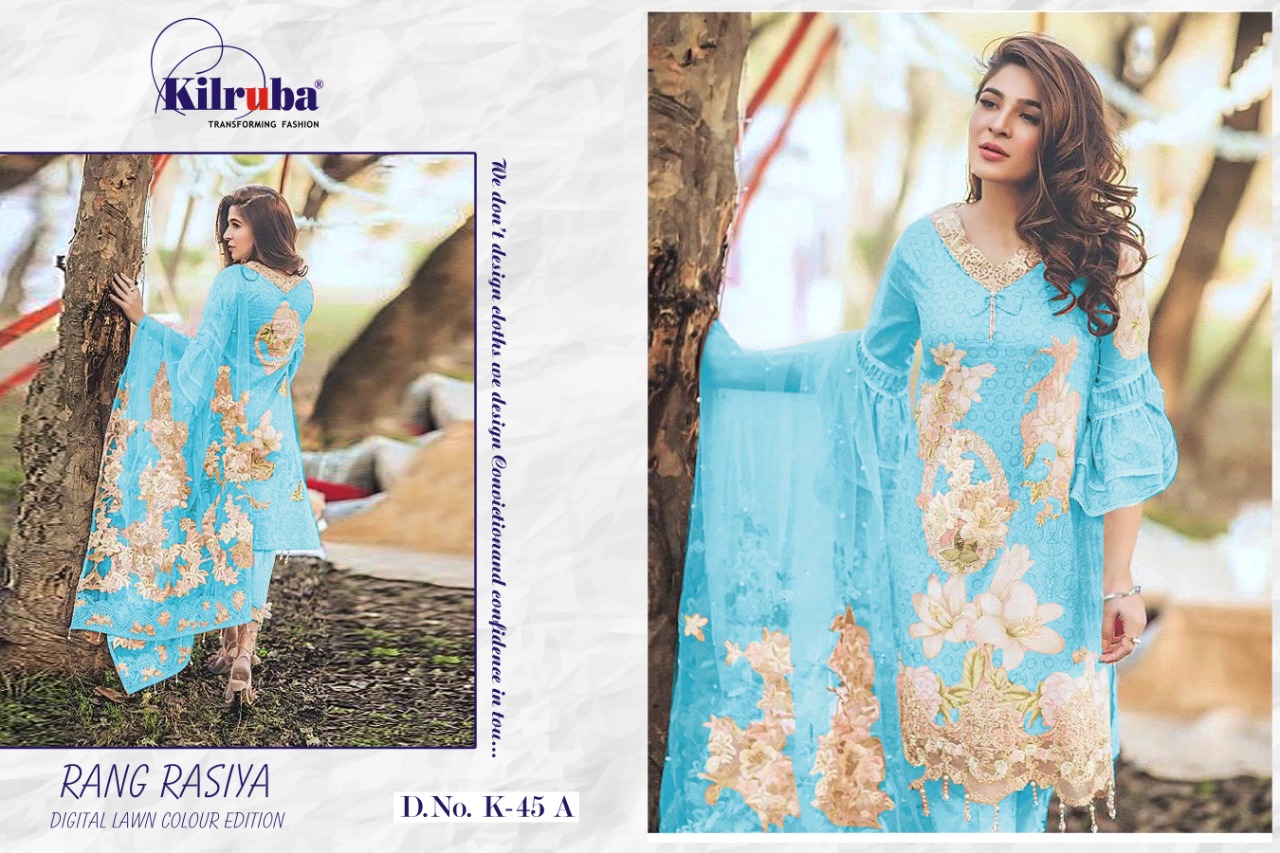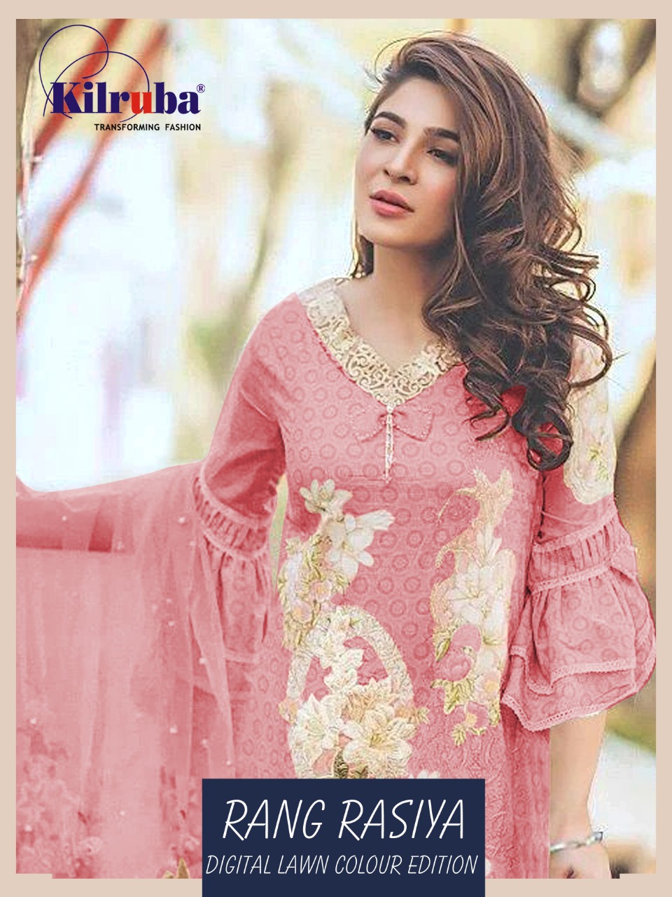 Buy Online Rang Rasiya By Kilruba Pakistani Suits Wholesale Supplier And Dealer Gujarat 4 Pcs of Full Catalogue at Wholesale Price. Looking for Rang Rasiya By Kilruba Pakistani Suits Wholesale Supplier And Dealer Gujarat Full Catalouge at Best Price? Buy Now Rang Rasiya By Kilruba Pakistani Suits Wholesale Supplier And Dealer Gujarat at Wholesale Rate of Rs 3596 with Total 4 Pcs from authroized dealer and supplier of Brand. Cost of Each piece is just only Rs 899 which is very low and affordable price to resale the product in your retail store ,This is Surat based Wholesale Supplier & Dealer of Brand. Click on Brand name to Know more about Brand's products.Call or Whatsapp on 9898838984 for booking or enquiry