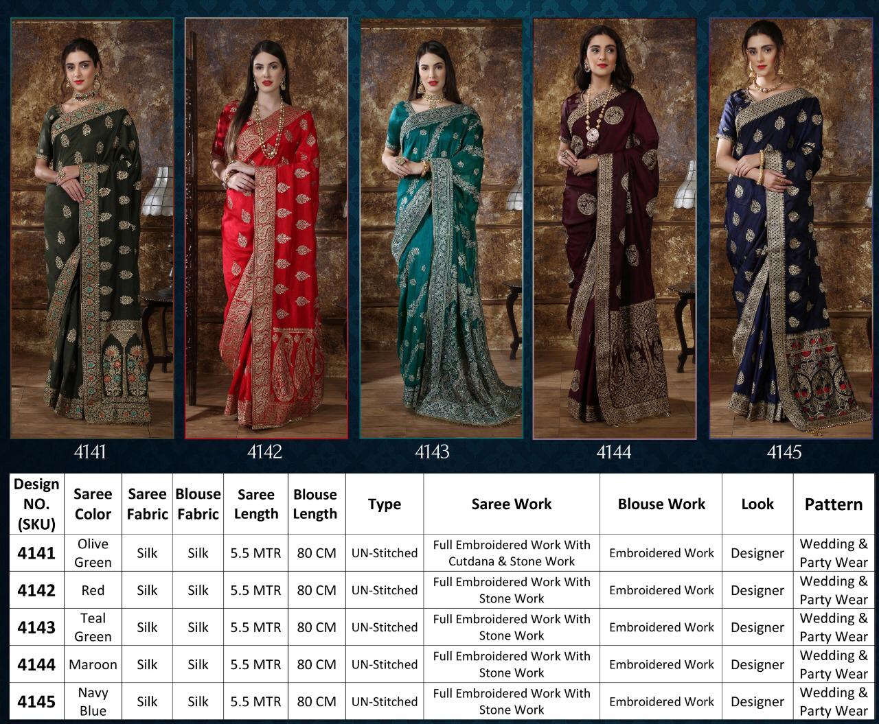 Buy Online Rang Roop Vol 5 By Khushboo Series 4141 To 4145 Designer Party Wear Sarees Set And Single Wholesale Supplier Gujarat 5 Pcs of Full Catalogue at Wholesale Price. Looking for Rang Roop Vol 5 By Khushboo Series 4141 To 4145 Designer Party Wear Sarees Set And Single Wholesale Supplier Gujarat Full Catalouge at Best Price? Buy Now Rang Roop Vol 5 By Khushboo Series 4141 To 4145 Designer Party Wear Sarees Set And Single Wholesale Supplier Gujarat at Wholesale Rate of Rs 0 with Total 5 Pcs from authroized dealer and supplier of BRAND'S Brand. Cost of Each piece is just only Rs 0 which is very low and affordable price to resale the product in your retail store ,This is Surat based Wholesale Supplier & Dealer of BRAND'S Brand. Click on Brand name to Know more about BRAND'S Brand's products.Call or Whatsapp on 9898838984 for booking or enquiry