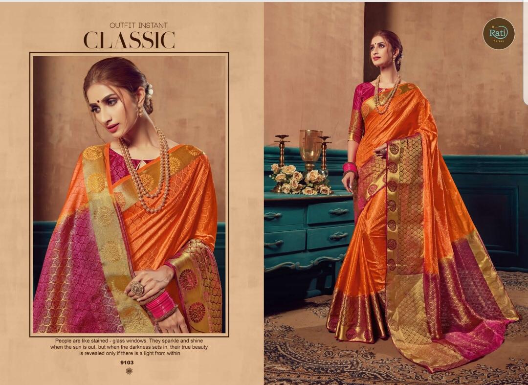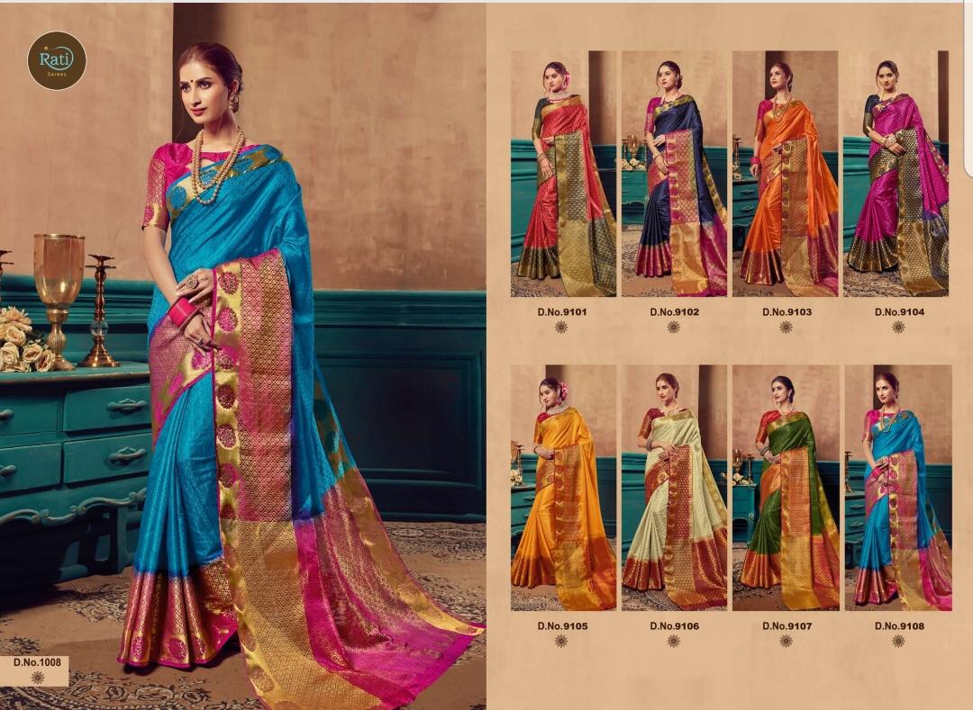 Buy Online Rang Sutra By Rati Banaras Silk Sarees Wholesale Supplier And Dealer Surat 8 Pcs of Full Catalogue at Wholesale Price. Looking for Rang Sutra By Rati Banaras Silk Sarees Wholesale Supplier And Dealer Surat Full Catalouge at Best Price? Buy Now Rang Sutra By Rati Banaras Silk Sarees Wholesale Supplier And Dealer Surat at Wholesale Rate of Rs 5480 with Total 8 Pcs from authroized dealer and supplier of BRAND'S Brand. Cost of Each piece is just only Rs 685 which is very low and affordable price to resale the product in your retail store ,This is Surat based Wholesale Supplier & Dealer of BRAND'S Brand. Click on Brand name to Know more about BRAND'S Brand's products.Call or Whatsapp on 9898838984 for booking or enquiry