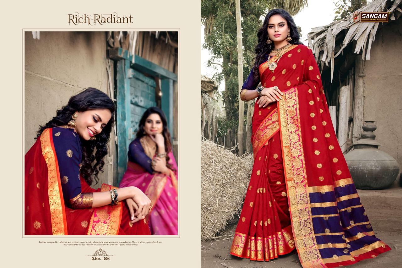 Buy Online Rang Utsav By Sangam 1001 Series Fancy Weaving Silk Saree Catlog Wholesale Dealer Surat 8 Pcs of Full Catalogue at Wholesale Price. Looking for Rang Utsav By Sangam 1001 Series Fancy Weaving Silk Saree Catlog Wholesale Dealer Surat Full Catalouge at Best Price? Buy Now Rang Utsav By Sangam 1001 Series Fancy Weaving Silk Saree Catlog Wholesale Dealer Surat at Wholesale Rate of Rs 5600 with Total 8 Pcs from authroized dealer and supplier of SANGAM Brand. Cost of Each piece is just only Rs 700 which is very low and affordable price to resale the product in your retail store ,This is Surat based Wholesale Supplier & Dealer of SANGAM Brand. Click on Brand name to Know more about SANGAM Brand's products.Call or Whatsapp on 9898838984 for booking or enquiry
