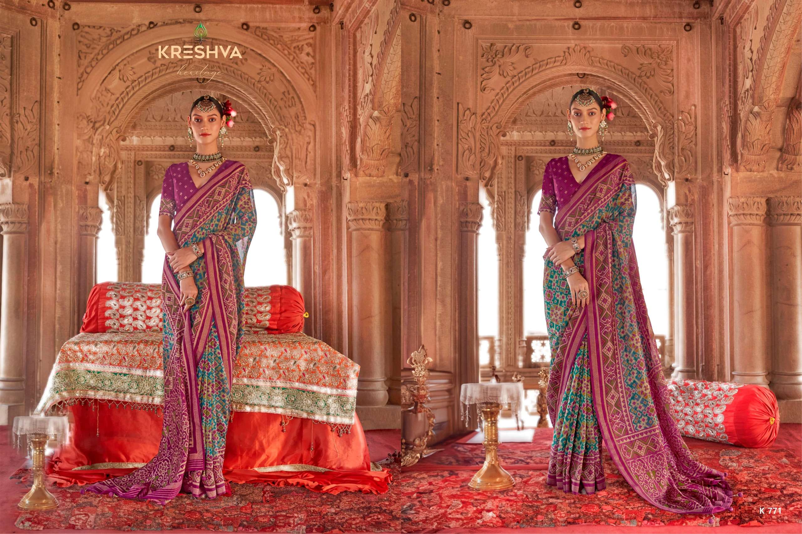 Buy Online Rang Vatika by Kreshva Series K 771 To K 782 Super Georgette saree collection manufacturer surat 12 Pcs of Full Catalogue at Wholesale Price. Looking for Rang Vatika by Kreshva Series K 771 To K 782 Super Georgette saree collection manufacturer surat Full Catalouge at Best Price? Buy Now Rang Vatika by Kreshva Series K 771 To K 782 Super Georgette saree collection manufacturer surat at Wholesale Rate of Rs 15540 with Total 12 Pcs from authroized dealer and supplier of KRESHVA Brand. Cost of Each piece is just only Rs 1295 which is very low and affordable price to resale the product in your retail store ,This is Surat based Wholesale Supplier & Dealer of KRESHVA Brand. Click on Brand name to Know more about KRESHVA Brand's products.Call or Whatsapp on 9898838984 for booking or enquiry