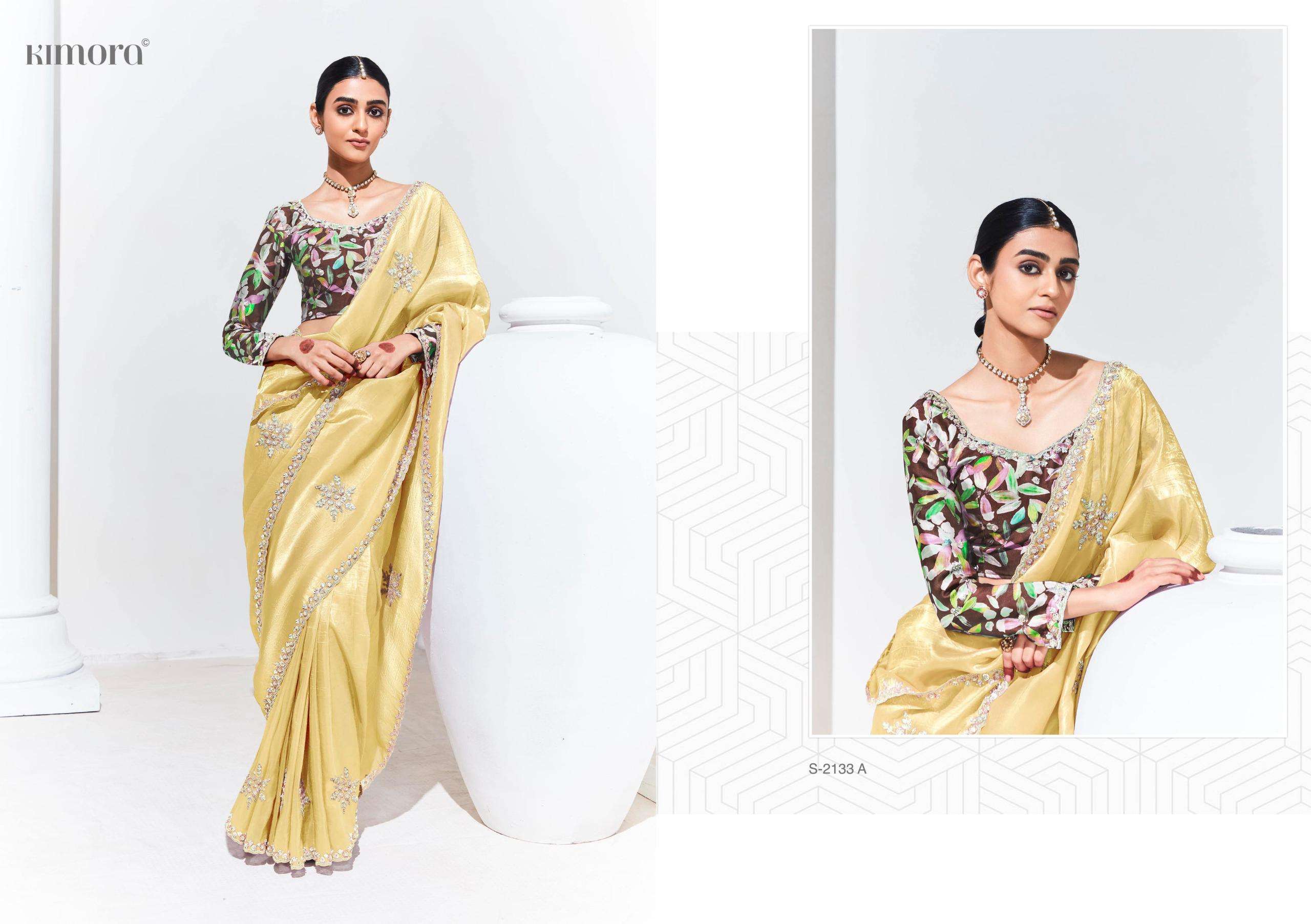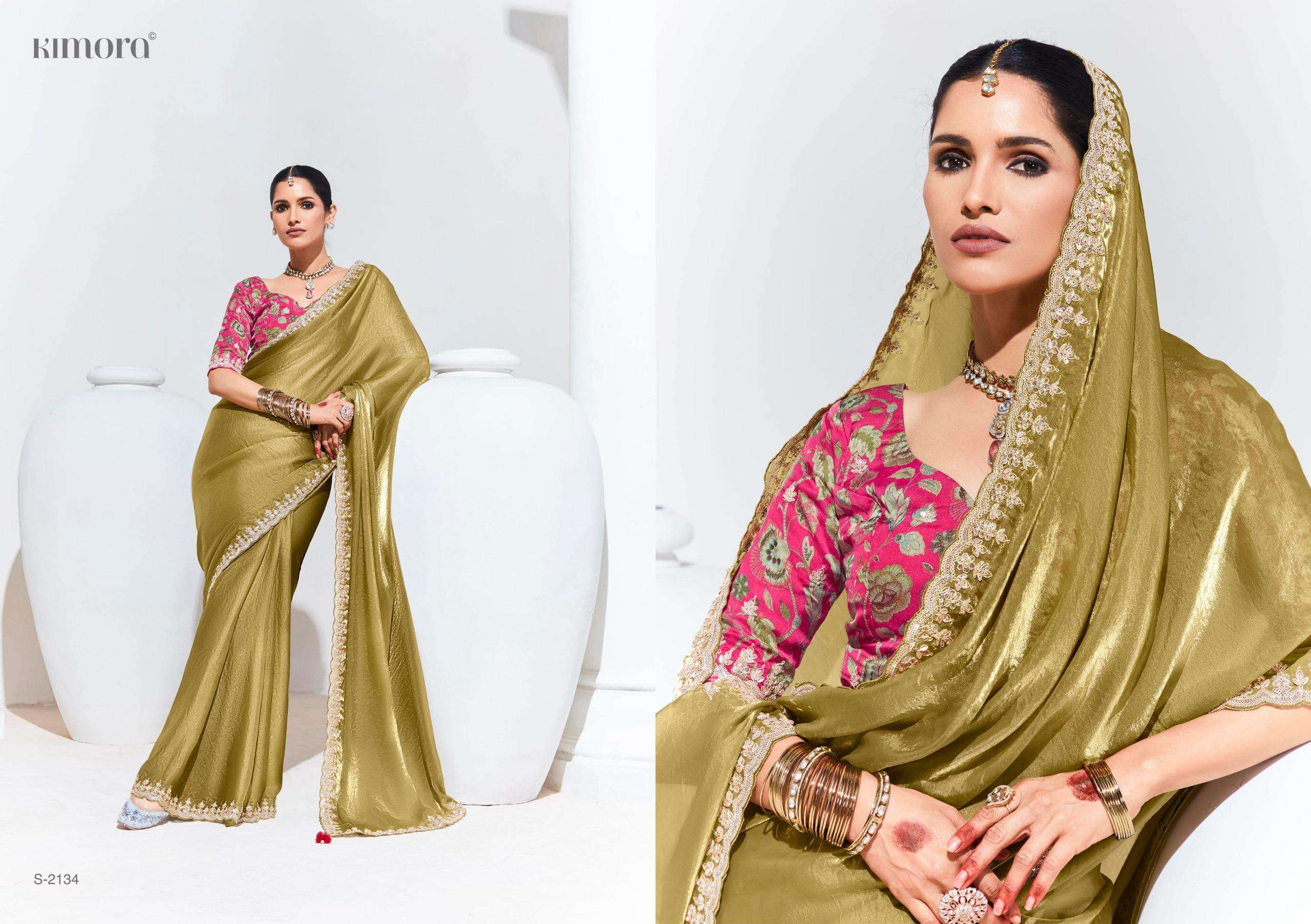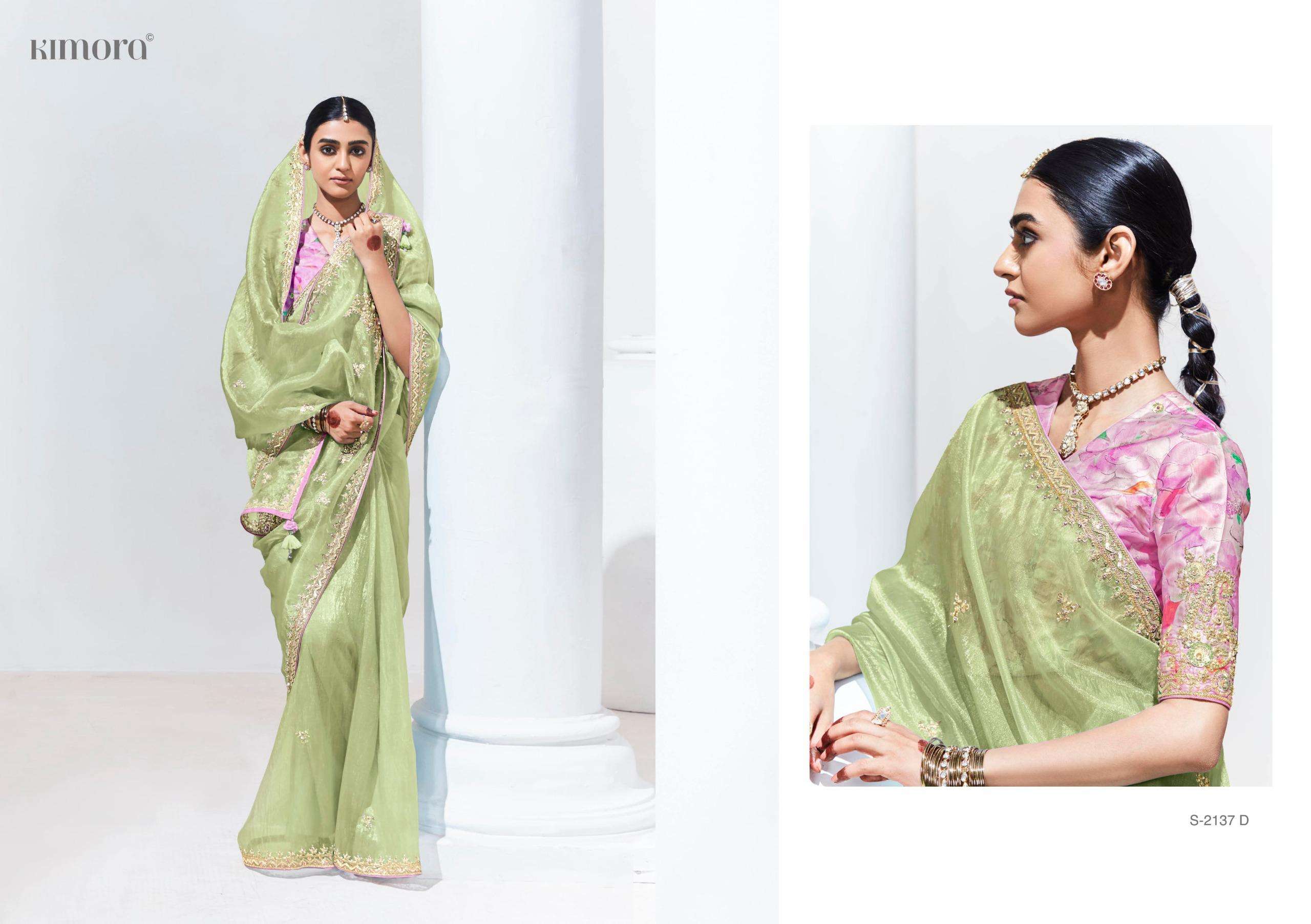 Buy Online Rangat Series 2133 2134 2137 by Kimora Fancy Saree collection manufacturer surat 16 Pcs of Full Catalogue at Wholesale Price. Looking for Rangat Series 2133 2134 2137 by Kimora Fancy Saree collection manufacturer surat Full Catalouge at Best Price? Buy Now Rangat Series 2133 2134 2137 by Kimora Fancy Saree collection manufacturer surat at Wholesale Rate of Rs 0 with Total 16 Pcs from authroized dealer and supplier of KIMORA Brand. Cost of Each piece is just only Rs 0 which is very low and affordable price to resale the product in your retail store ,This is Surat based Wholesale Supplier & Dealer of KIMORA Brand. Click on Brand name to Know more about KIMORA Brand's products.Call or Whatsapp on 9898838984 for booking or enquiry