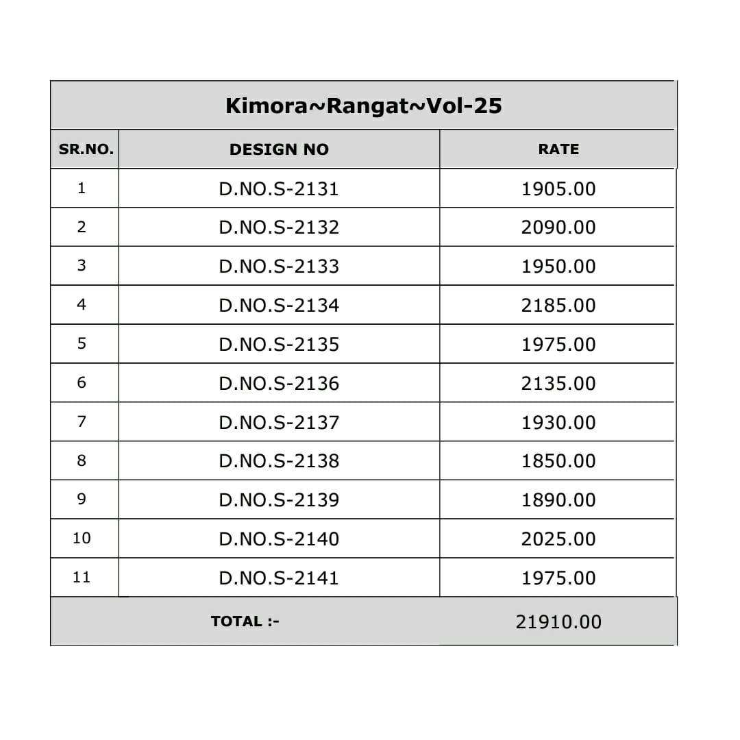 - Brand: Kimora - Catalog Name: Rangat - Series: 2133-2134-2137 (New Colors Added) - 2132-2136-2138-2141 (Ready to Ship Designs)