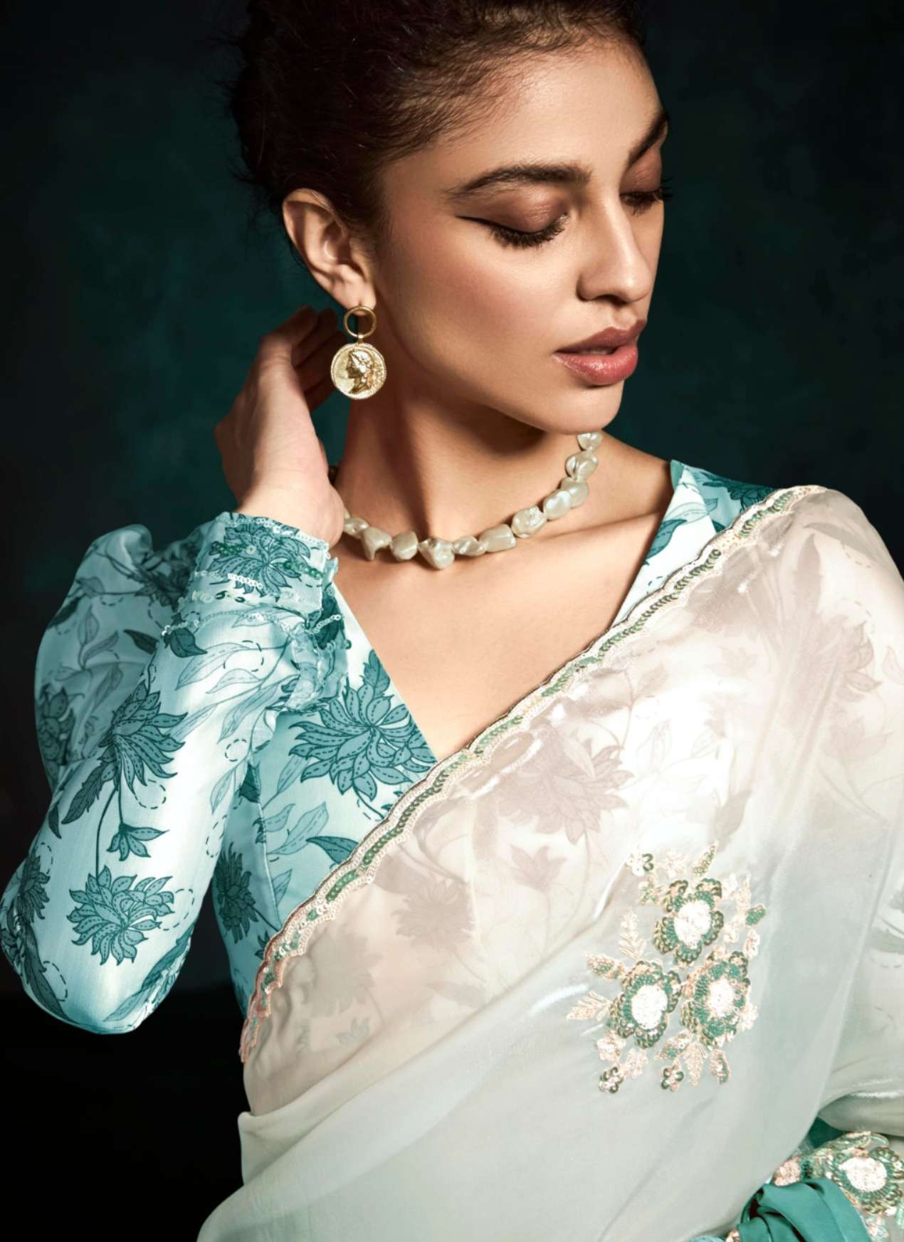 *Blouse Fabric : Satin Silk Having Digital Print & Embroidery On The Sleeves*